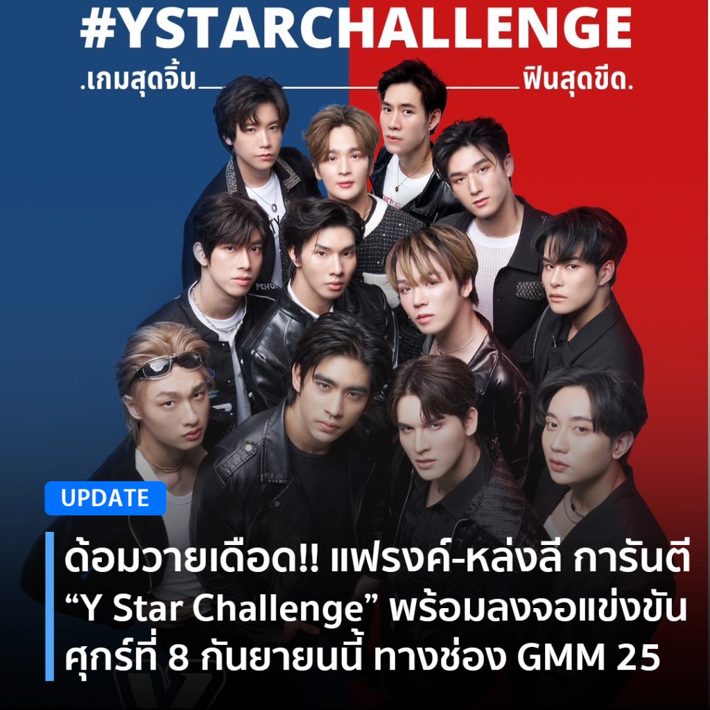 สิ้นสุดการรอคอยกันเป็นที่เรียบร้อย สำหรับรายการ “Y Star Challenge” (วาย สตาร์ ชาเลนจ์) จาก บริษัท โปรโกลด์ (ไทยแลนด์) จำกัด นำโดย คุณวิธิวัสส์ ศุภศิริวัฒนกุล ประธานบริหาร บริษัท โปรโกลด์ (ไทยแลนด์) จำกัด และ executive โปรดิวเซอร์, คุณกานต์สินี เลิศประดิษฐ์ executive โปรดิวเซอร์, คุณภพภัทร เลิศประดิษฐ์ ที่เตรียมลงจอสะเทือนด้อมวายกันใน วันศุกร์ที่ 8 กันยายน นี้ จัดหนักโดยผู้กำกับมากฝีมืออย่าง กอล์ฟ-ธัญญ์วาริน สุขะพิสิษฐ์ รับหน้าที่กำกับรายการกึ่งเรียลลิตี้ ที่นำพระเอก-นายเอกชื่อดังจากซีรีส์วายที่ได้รับความนิยม 12 คน ลงสนามประชันทักษะรอบด้าน ร้อง,เต้น,เล่น และ โชว์ ได้แก่ คชา-นนทนันท์ อัญชุลีประดิษฐ์,ป๊อปปี้-รัชพงศ์ อโนมกิติ,ยุ่น-ภูษณุ วงศาวณิชชากร,กัน ณภัทร ณระนอง,แฟรงค์ ธนัตถ์ศรันย์ ซำทองไหล,หล่งลี-หล่งซื่อ ลี,เจมส์-พงศภัค ราชาภรณ์,ดุล ร่มจำปา,มอส-ภาณุวัฒน์ โสประดิษฐ,แบงค์-มณฑป เหมตาล,เอิร์ธ -กัษมนณัฏฐ์ นามวิโรจน์ และ อาร์ต-ภาคภูมิ จวนชัยนาท ดำเนินรายการ โดย 2 พิธีกรวัยรุ่น ดีเจแนน-รชาดา จึงวัฒนกิจ และ โอมม่อน-ภพภัทร เลิศประดิษฐ์ ออกอากาศ จำนวน 8 ตอน โดยจะ ประเดิม EP 1 ได้ใน วันศุกร์ที่ 8 กันยายนนี้ เวลา 23.00-24.00 น. ทางช่อง GMM 25