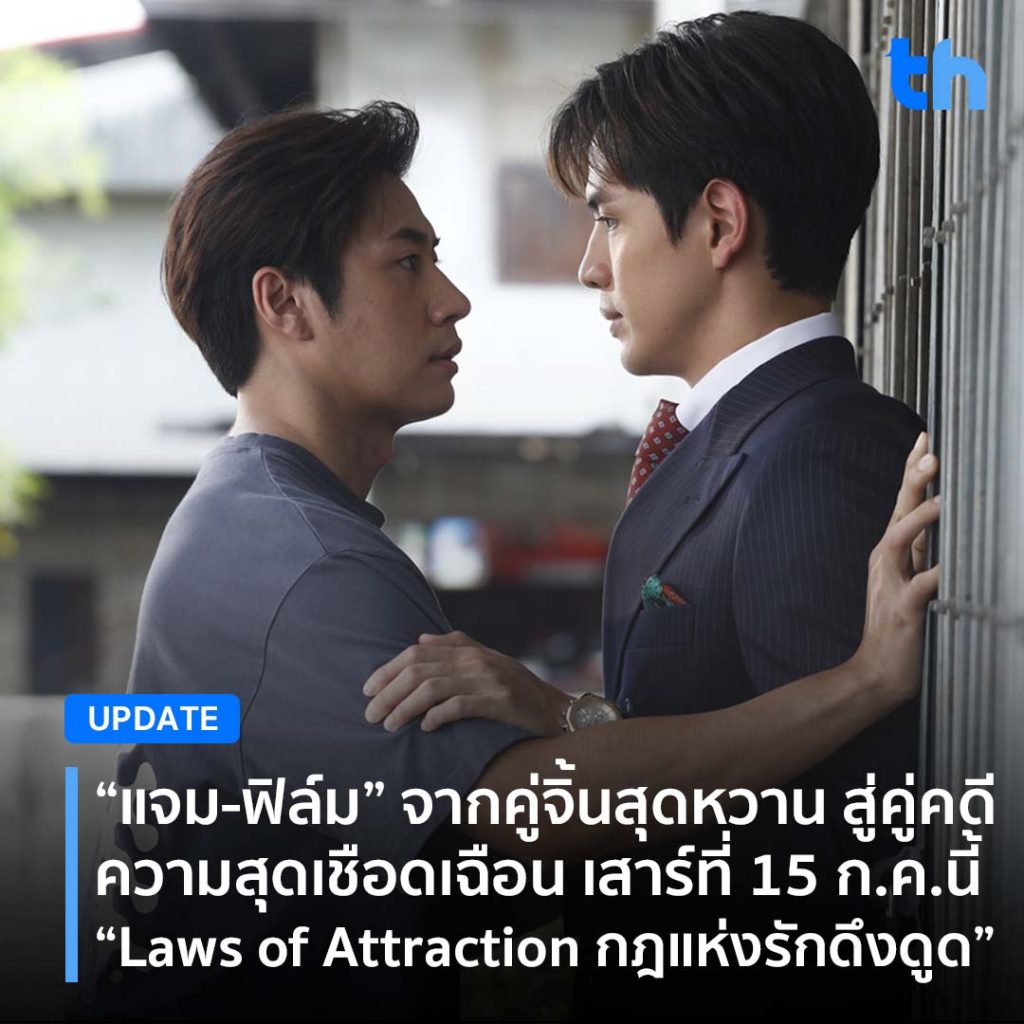 ประเดิมเปิดเรื่องก็เกิดเหตุดราม่าขึ้นทันที เมื่อ แจม-รชตะ หรือ “ติณห์” ถึงกับใจสลาย เพราะต้องสูญเสียหลานสาวสุดที่รัก ไปด้วยอุบัติเหตุทางรถยนต์ จากความประมาทของลูกชายผู้มีอิทธิพล และยังไม่ได้รับความเป็นธรรม หรือแม้แต่คำขอโทษจากผู้กระทำความผิด แจมจึงทำทุกทางเพื่อทวงความยุติธรรมในครั้งนี้ จนทำให้ได้เจอกับ ฟิล์ม-ธนภัทร หรือ “ฌาณ” ทนายของคู่กรณี ที่มีเล่ห์เหลี่ยมรอบตัว เห็นแก่เงิน พยายามใช้ทุกวิธีทางเพื่อชัยชนะและผลประโยชน์ งานนี้เมื่อทนายไร้หัวใจและครูผู้ต้องการความยุติธรรมมาปะทะกัน มุมมองชีวิตที่แตกต่างกันสุดขั้ว จะเป็นแรงดึงดูดให้พวกเขาใกล้ชิดกันได้อย่างไร? ตามลุ้นกันสดๆ ได้ใน “Laws of Attraction กฎแห่งรักดึงดูด” ทุกวันเสาร์ เวลา 20.15 น. เริ่มเสาร์ที่ 15 กรกฎาคมนี้ ทางช่องวัน31