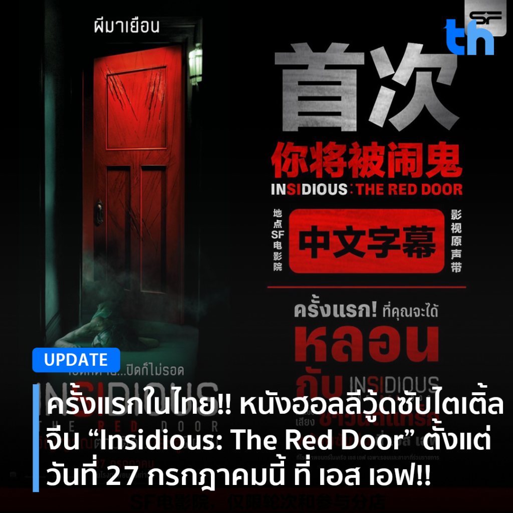 โรงภาพยนตร์ในเครือ เอส เอฟ ต้อนรับเรื่องราวสุดสยองบทสุดท้ายที่จะชวนทุกคนขวัญผวากับภาพยนตร์เรื่อง “Insidious: The Red Door วิญญาณตามติด…ประตูผีผ่าน” พร้อมเข้าฉายวันที่ 27 กรกฎาคม 2566 ที่โรงภาพยนตร์ในเครือ เอส เอฟ ทุกสาขาทั่วประเทศ