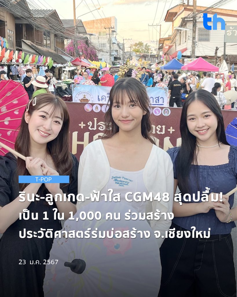ถึงจะเป็นเพียงส่วนหนึ่ง แต่ไอดอลสาวเมืองเชียงใหม่อย่าง รินะ-อิซึตะ, ลูกเกด-พิมพ์ลภัส สุวรรณน้อย และฟ้าใส-ภัทรธิดา จงประสานเกียรติ จาก CGM48 ในสังกัด iAM ก็ปลื้มใจมากกับการได้ร่วมเป็น 1 ใน 1,000 คน ตวัดพู่กัน โชว์ฝีมือเพ้นท์ร่มบ่อสร้างของงานเทศกาลร่มบ่อสร้างและหัตถกรรมสันกำแพง ครั้งที่39 เพื่อสร้างประวัติศาสตร์กระตุ้นการท่องเที่ยวและขับเคลื่อนวัฒนธรรมให้กับจังหวัดเชียงใหม่ อำเภอสันกำแพง แหล่งผลิตร่มและหัตกรรมพื้นบ้านสำคัญ