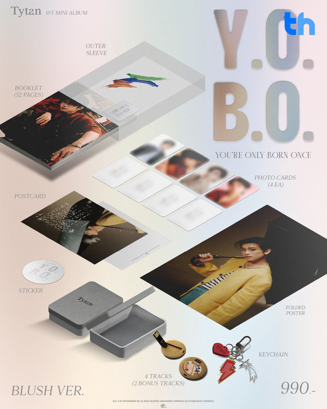 เท่านั้นยังไม่พอ “กึ้ง เฉลิมชัย” สั่งลุยปล่อย “1st Mini Album Y.O.B.O. [YOU’RE ONLY BORN ONCE]” ที่เป็น Physical ออกมาถึง 2 Version ได้แก่ “BLISS VER.” และ “BLUSH VER.” ให้แฟน ๆ ได้เก็บสะสม พร้อมเตรียมจัดแฟนไซน์ให้หนุ่มไทแทนหลังจากที่เหล่า “ธันเดอร์” (ชื่อแฟนคลับ) เรียกร้องกันมานาน
