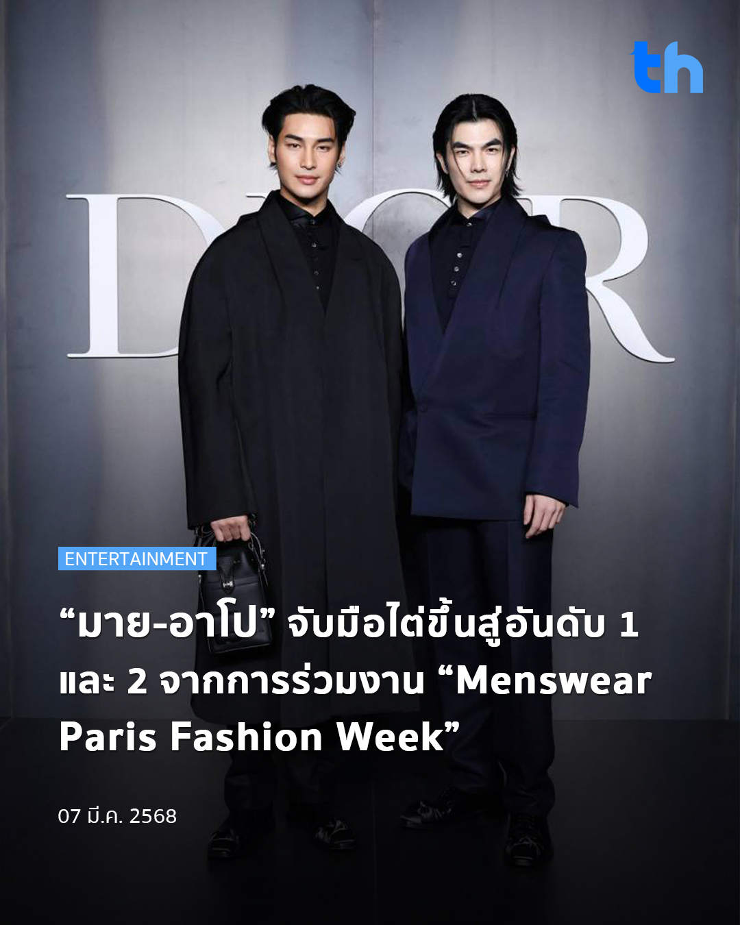 “อาโป ณัฐวิญญ์” และ “มาย ภาคภูมิ” นักแสดงจาก BeOnCloud จับมือกันไต่สู่อันดับ 1 และ 2 ของโลก จากการร่วมงาน Menswear Paris Fashion Week กับโชว์ Winter 2025 ของ Dior เรียกได้ว่าเป็นการปรากฏตัวคู่กันที่กรุงปารีสในรอบเกือบ 3 ปีเลยทีเดียว หลังจากที่ต้องฉายเดี่ยวแยกกันไปชมโชว์ในแต่ละครั้ง