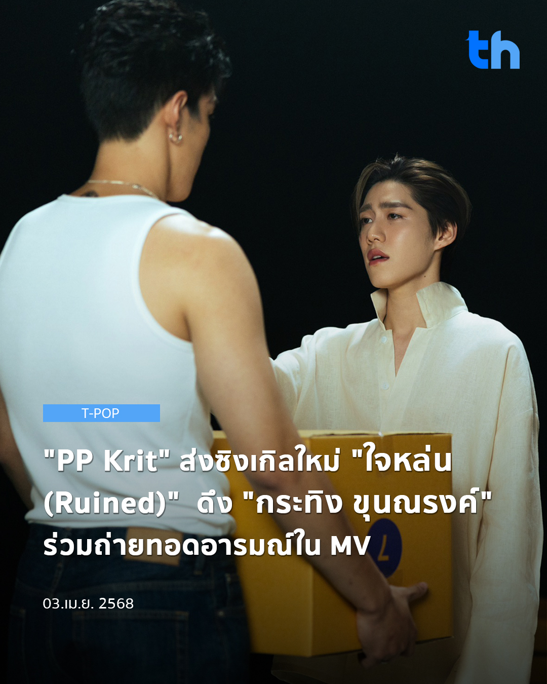 สามารถฟังเพลง “ใจหล่น (Ruined)” จาก “PP Krit” ได้แล้วในอัลบั้ม Billkin & PP Krit OST THE RED ENVELOPE ทาง Music Streaming และติดตามชมมิวสิกวิดีโอเพลงนี้ได้แล้วทาง YouTube : Billkin & PP Krit Official