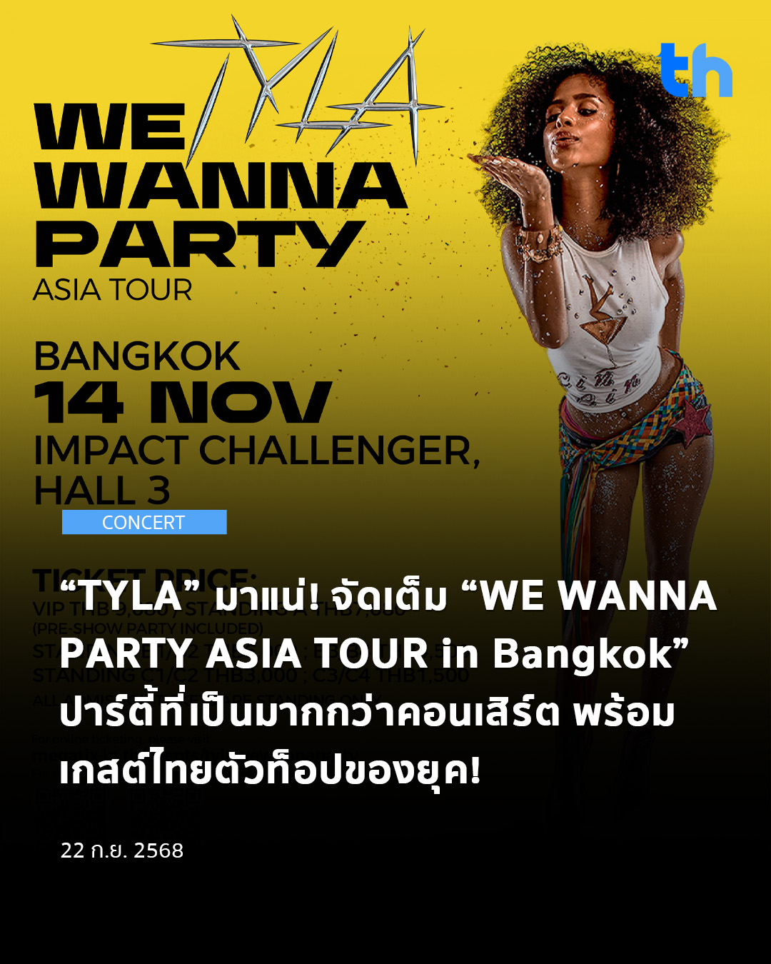 ความสำเร็จของอัลบั้ม “Tyla” ที่เต็มไปด้วยไวบ์ความบันเทิงที่แปลกใหม่ ทำให้ “TYLA WE WANNA PARTY ASIA TOUR” กลายเป็นอีกแลนด์มาร์คความสนุกที่คนทั่วโลกรอคอย และคราวนี้ “TYLA WE WANNA PARTY ASIA TOUR in Bangkok” ก็ได้เกิดขึ้น และจะเป็นปาร์ตี้ที่สมการรอคอยทุกคน การันตีว่าปาร์ตี้ครั้งนี้จะเสิร์ฟความประทับใจแบบเต็มอิ่มให้กับทุกคน