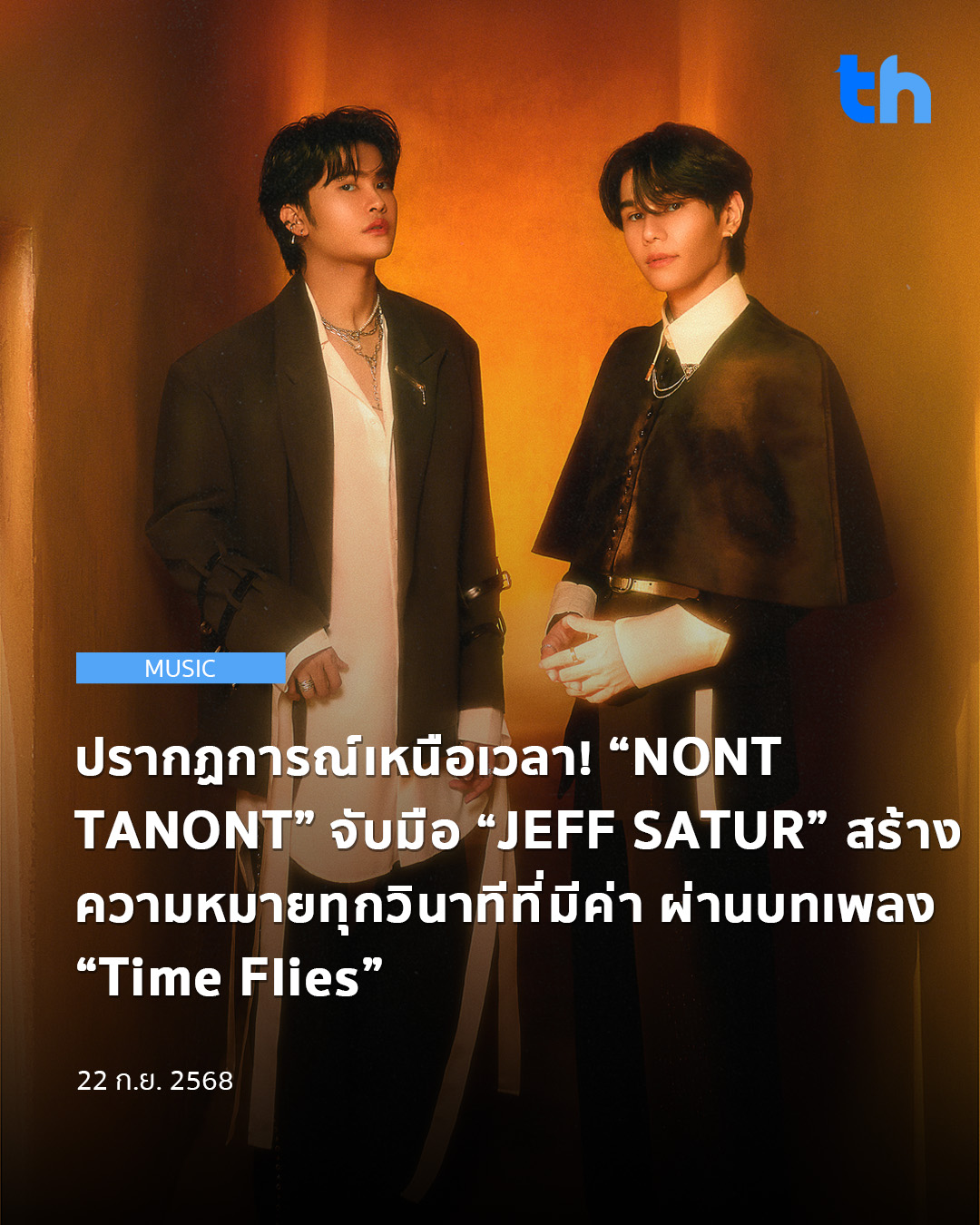 ครั้งนี้ “NONT TANONT” โคจรมาพบกับ “Jeff Satur” ศิลปินมากความสามารถเพื่อสร้างเฉดใหม่ผ่านบทเพลง “Time Flies” การร่วมงานที่ถูกขนานนามว่า เหนือปรากฏการณ์ เพราะสามารถหลอมรวมเอกลักษณ์ทางดนตรีและพลังเสียงของทั้งคู่ให้ออกมาลึกซึ้ง กินใจ และตราตรึงในทุกวินาที