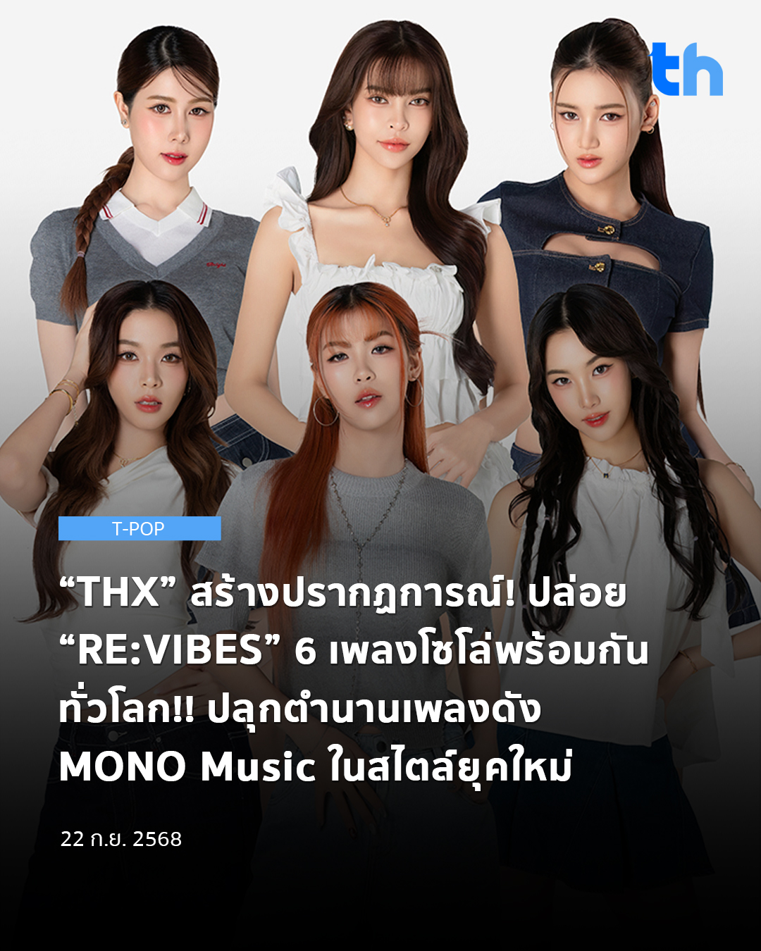 “THX RE:VIBES” คือโปรเจกต์พิเศษที่นำเพลงฮิตในตำนานของ MONO Music กลับมาตีความใหม่ ถ่ายทอดผ่านพลังเสียงและเสน่ห์เฉพาะตัวของ 6 สมาชิกเกิร์ลกรุ๊ป THX ได้แก่ “ปรากฏการณ์” (เรย์), “เสียงเพลงในใจฉัน” (แบม), “ลังเล” (ซินดี้), “สุขเป็นร้อยเจ็บเป็นล้าน” (เชียร์), “ความรักดี ๆ อยู่ที่ไหน” (ตาต้า) และ “มีสิทธิ์อะไร” (เฟรช)