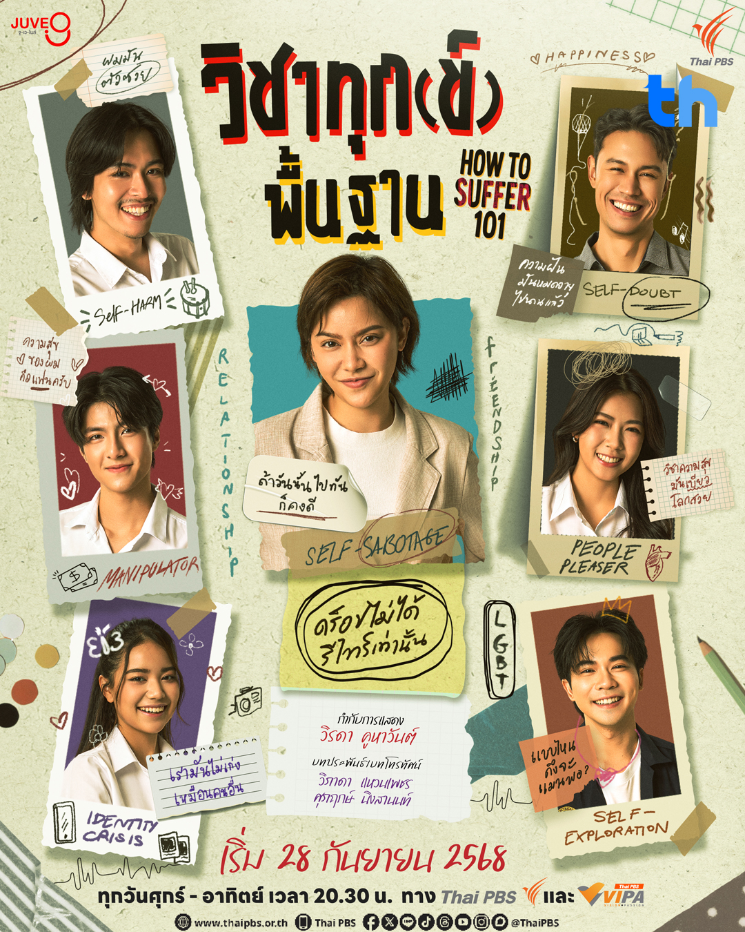 ความสุขมีจริง หรือเป็นแค่ทฤษฏี? “ไทยพีบีเอส” ร่วมกับ “บริษัท จูเวไนล์ จำกัด” อยากชวนผู้ชมมาเปิดใจพิสูจน์ไปพร้อมกันกับคลาสพิเศษในซีรีส์ “วิชาทุก(ข์)พื้นฐาน” (How To Suffer 101)
