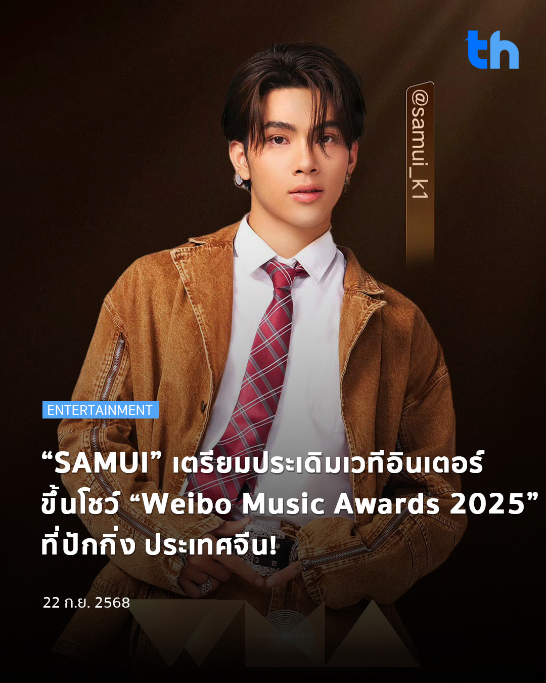 นี่คืออีกก้าวความสำคัญของ “SAMUI” (สมุทร แก้ววัน) ศิลปินคลื่นลูกใหม่จากค่าย White Music ที่ล่าสุดได้รับเชิญขึ้นเข้าร่วมงาน “Weibo Music Awards 2025” ที่กรุงปักกิ่ง ประเทศจีน งานนี้ไม่ใช่แค่การแสดงธรรมดา แต่เป็นสเตจเปิดโชว์สุดพิเศษ ที่แฟน ๆ จะได้เห็น “SAMUI” โชว์บนเวทีเดียวกับเหล่าศิลปินระดับ TOP ทั่วเอเชีย เรียกได้ว่าเป็นก้าวสำคัญของ “SAMUI” การก้าวสู่ระดับเอเชียและตลาดอินเตอร์