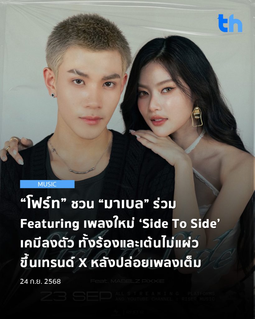 “โฟร์ท ณัฐวรรธน์” ศิลปินและนักแสดงมากความสามารถจากค่าย RISER MUSIC ในเครือ GMMTV กลับมาสร้างความฮือฮาอีกครั้งกับซิงเกิลใหม่ล่าสุด ‘Side To Side’ ที่คราวนี้พิเศษยิ่งกว่าเดิม เพราะได้ชวนศิลปินสาวอย่าง “มาเบล (MABEL)” จากวง Pixxie มาร่วม Featuring พร้อมทั้งแสดงมิวสิควิดีโอร่วมกัน