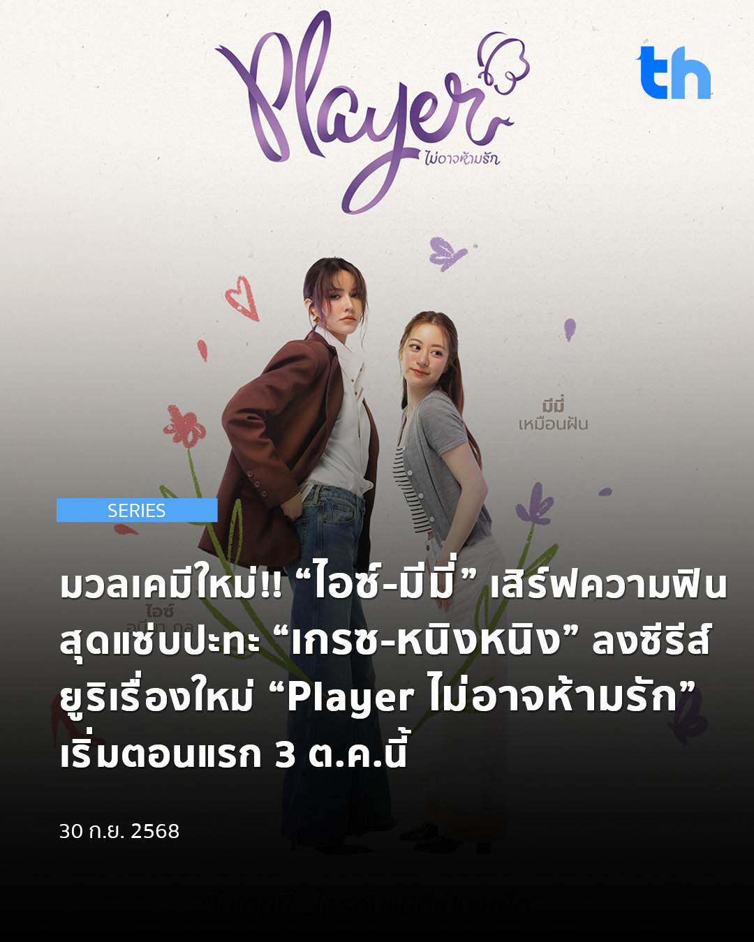 มวลเคมีใหม่!! “ไอซ์-มีมี่” เสิร์ฟความฟินสุดแซ่บปะทะ “เกรซ-หนิงหนิง” ลงซีรีส์ยูริเรื่องใหม่ “Player ไม่อาจห้ามรัก” เริ่มตอนแรก 3 ต.ค.นี้
