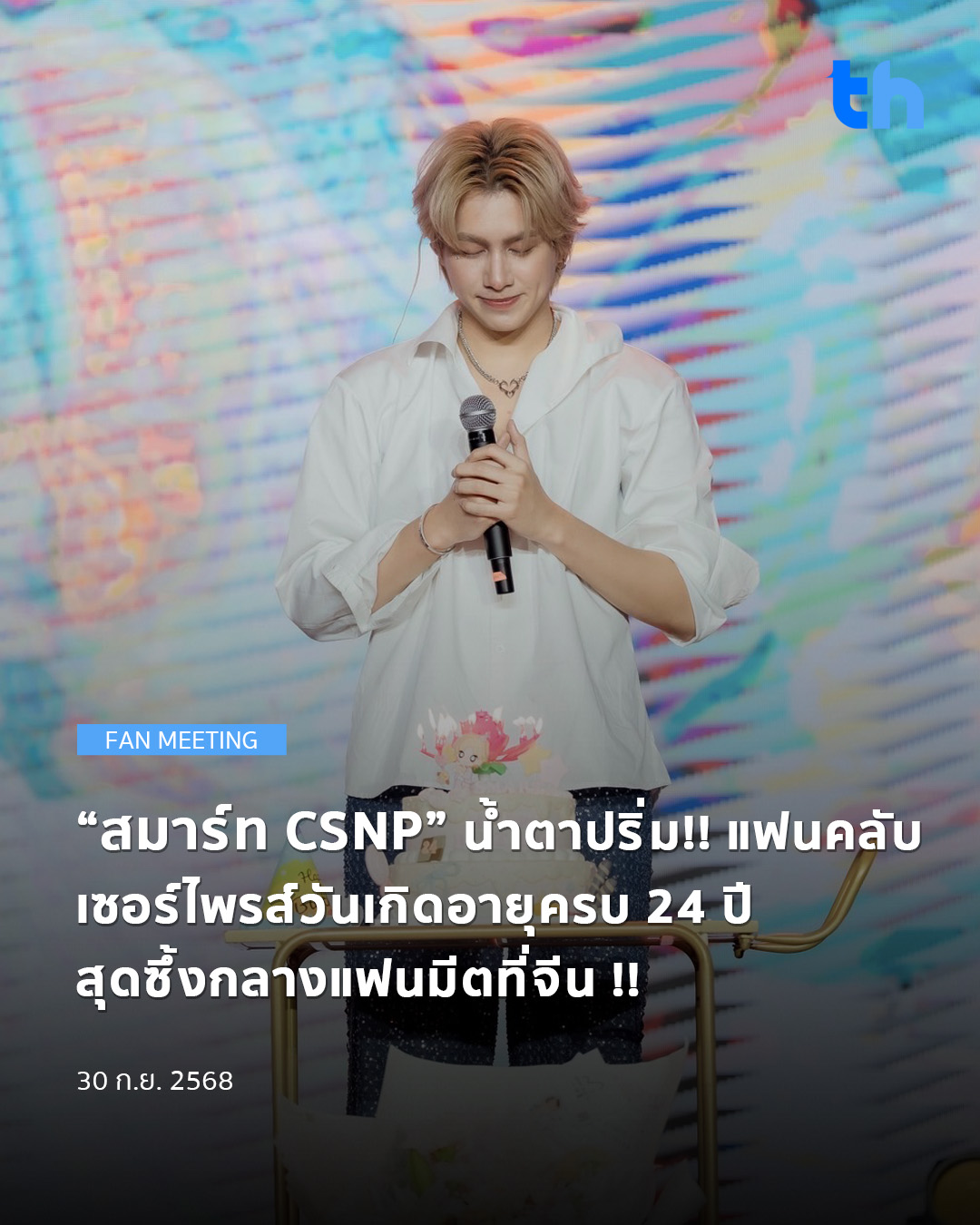 เรียกว่ามีกิจกรรมให้เห็นที่แดนมังกรกันอยู่เรื่อย ๆ สำหรับศิลปินหนุ่ม “CSNP” หรือ “สมาร์ท ชิษณุพงศ์” จากค่าย GRAND IVORY RECORD เจ้าของ เพลง CRISPY, BLEED COLD และ LIMOUSINE จากมินิอัลบั้ม Call Me CSNP ล่าสุดก็มีเรื่องที่ทำให้สมาร์ทถึงกับน้ำตาซึม กับแฟนมีตติ้งวันเกิดที่ฉงชิ่ง