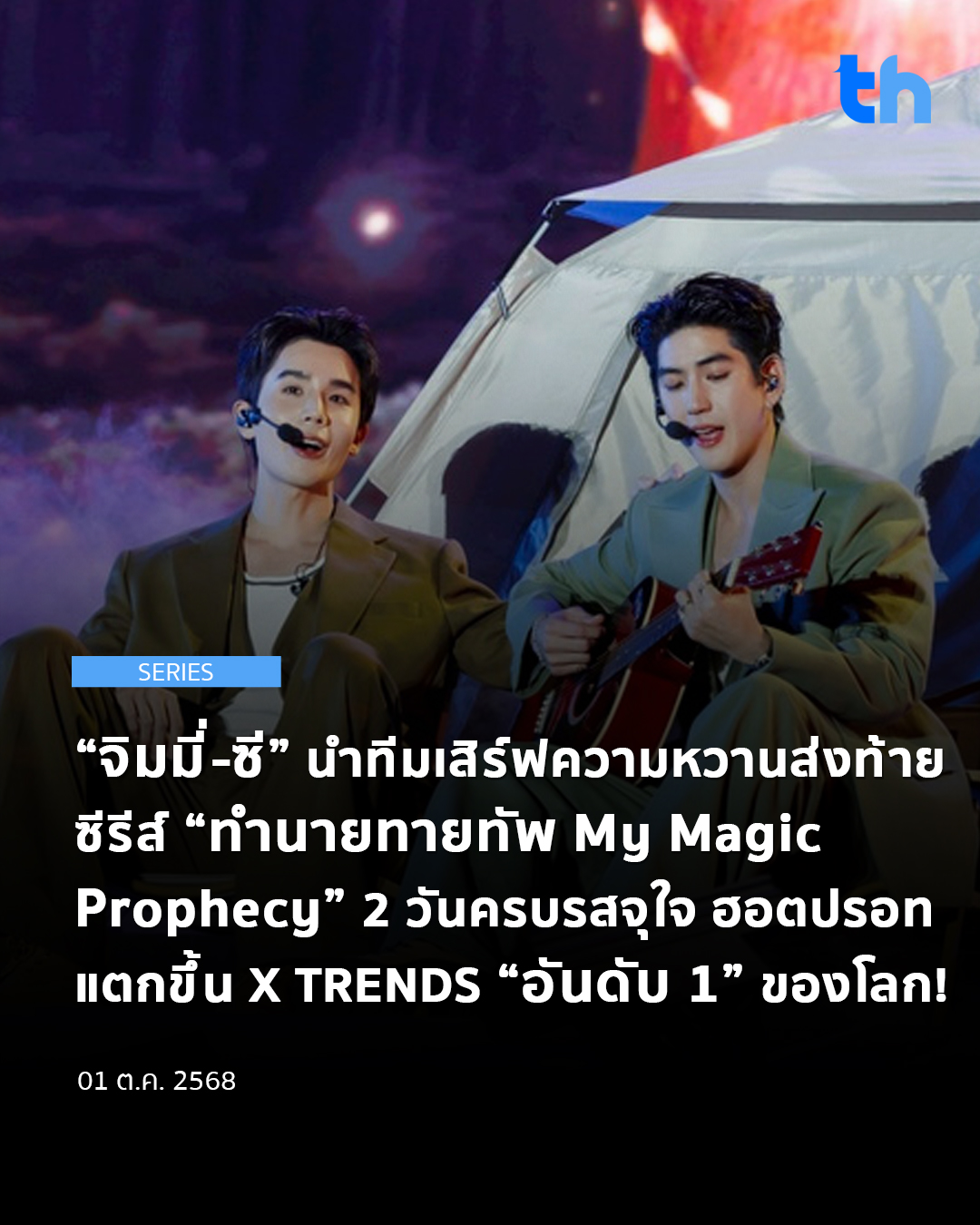 ทำให้ #MyMagicProphecyFinalEP พุ่งขึ้น X TRENDS “อันดับ 1” Worldwide, Thailand, Angola, Belarus, Belgium, Bhutan, Bolivia, Bulgaria, China, Costa Rica, Cote D’ivoire, Croatia, Czech Republic, Dominican Republic, Ei Salvador, Estonia, Ethiopia, Hong Kong, Hungary, India, Indonesia, Kyrgyzstan, Laos, Macao, Malaysia, Mexico, Myanmar, Nepal, Norway, Panama, Paraguay, Peru, Philippines, Portugal, Puerto Rico, Singapore, Sri Lanka, Sweden, Taiwan, Trinidad And Tobago, Ukraine, Vietnam และอันดับอื่น ๆ ในอีกหลายพื้นที่ทั่วโลก ส่วนวันที่สอง #MyMagicProphecyAfterParty ก็ทะยานขึ้น X TRENDS “อันดับ 1” Hong Kong, Indonesia และอันดับอื่น ๆ ในอีกหลายพื้นที่ทั่วโลก