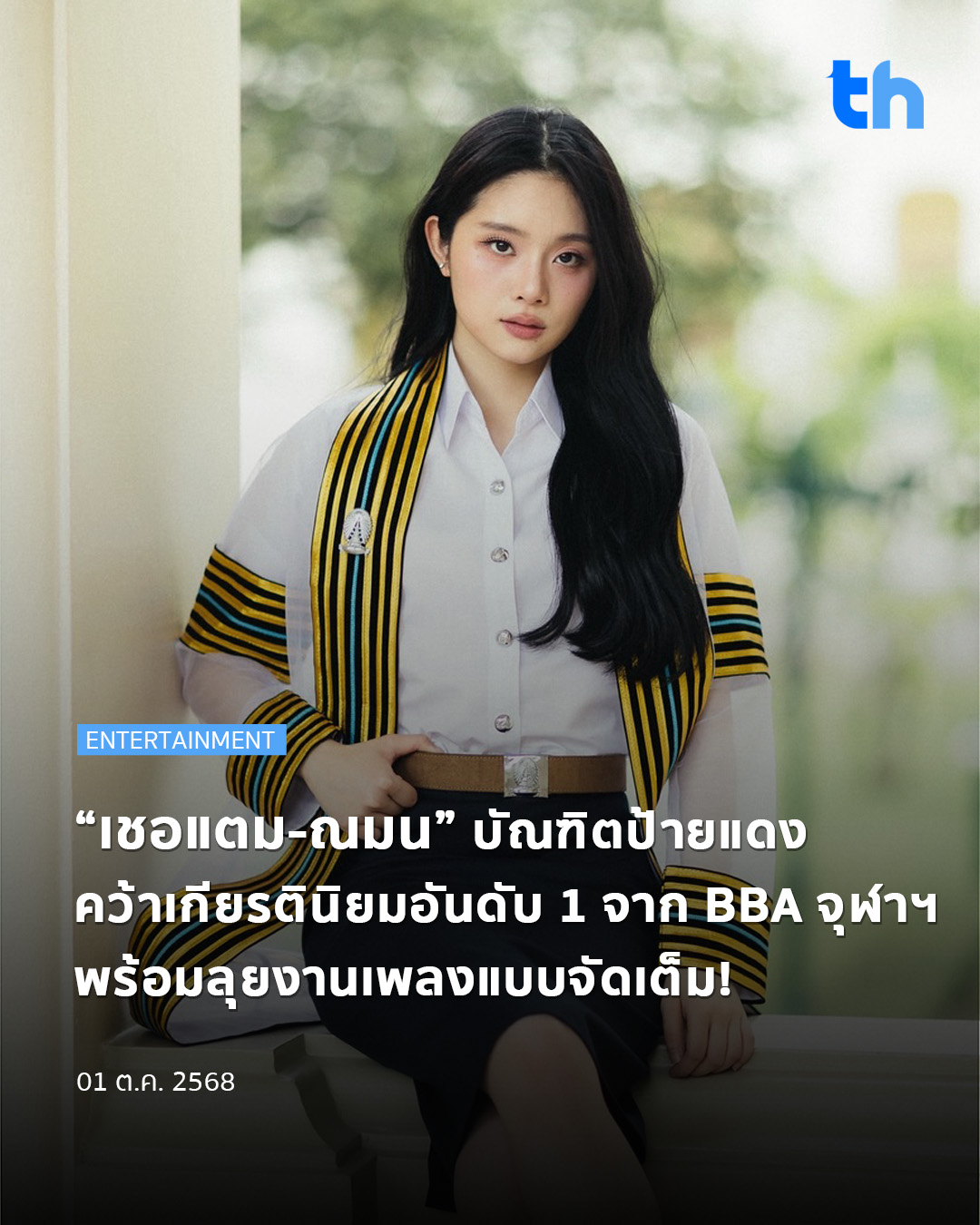 ปังไม่ไหว! ขอยกนิ้วให้กับ “เชอแตม-ณมน สวาทยานนท์” ศิลปินจากค่าย 411Music ที่ล่าสุดเพิ่งคว้าใบปริญญาจาก คณะบริหารธุรกิจ หลักสูตรนานาชาติ (BBA – International Program) จุฬาลงกรณ์มหาวิทยาลัย ไปเป็นที่เรียบร้อย