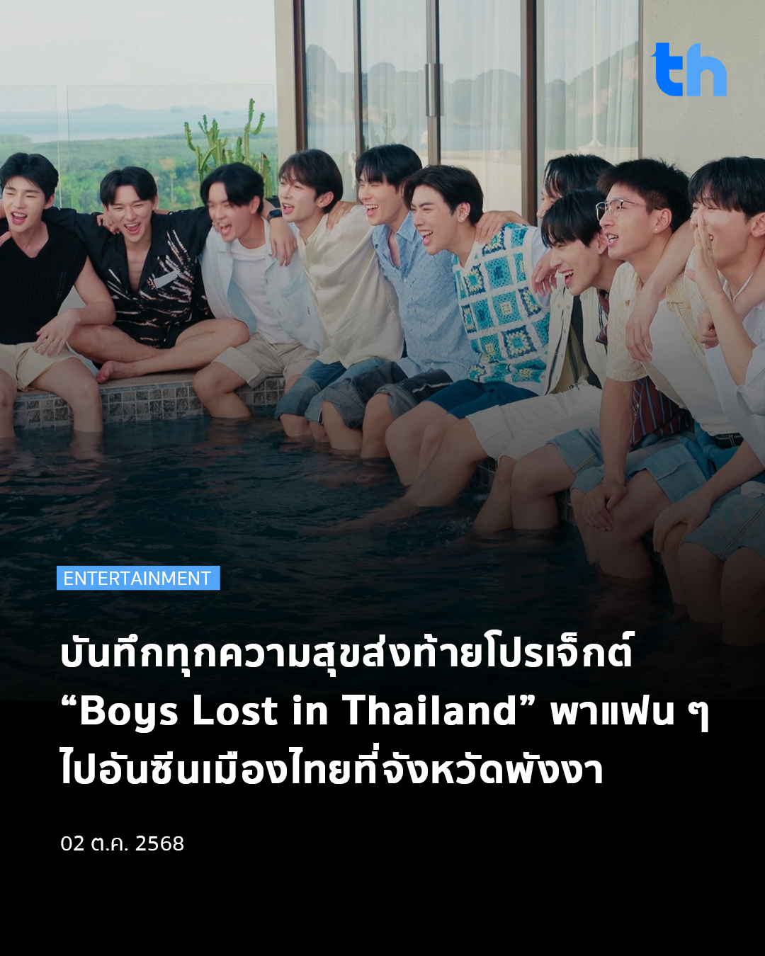 ปิดท้ายด้วยการแชร์โมเมนต์สุดประทับใจของแต่ละคนที่ทำให้ช่วงเวลาของการเดินทางครั้งนี้เต็มไปด้วยความหมายที่ล้ำค่าและเรื่องราวสุดประทับใจ งานนี้บอกเลยว่าเต็มไปด้วยเสียงหัวเราะ รอยยิ้ม และคราบน้ำตา ติดตามชมตอนสุดท้ายของรายการ “Boys Lost in Thailand” EP.11 ออกอากาศวันศุกร์ที่ 3 ตุลาคม 2568 เวลา 19.00 น. ทาง WeTV สำหรับโปรเจ็กต์ต่อไปของหนุ่ม ๆ จะเป็นอะไรนั้นต้องติดตามเร็ว ๆ นี้ บอกเลยว่าตื่นเต้นแน่นอน!!