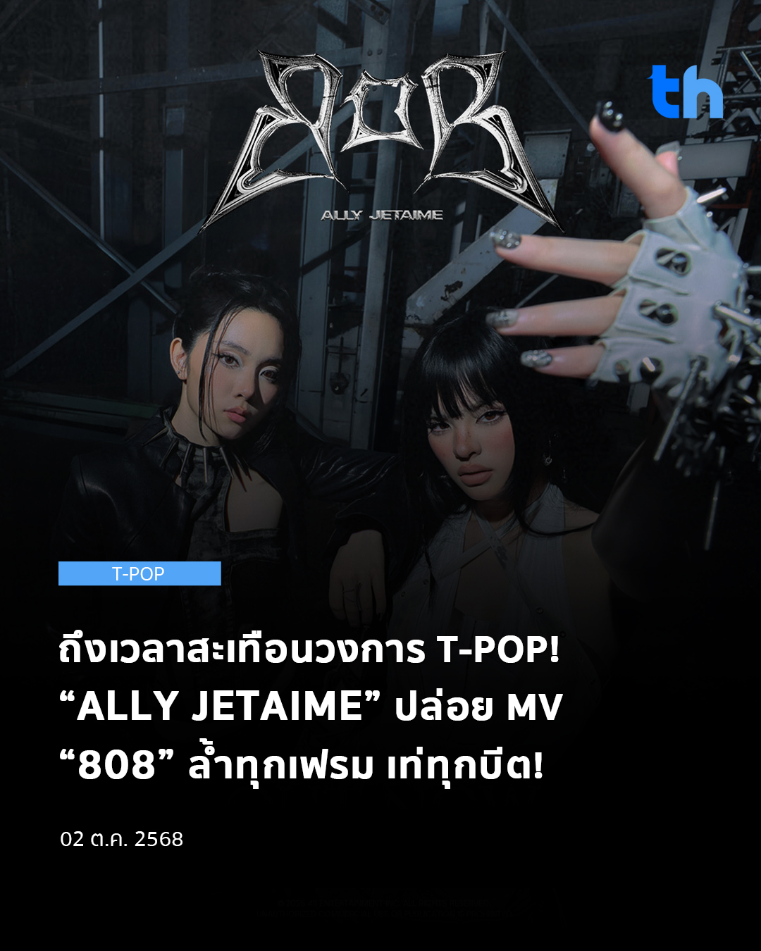 ระเบิดความมันส์! ดูโอ้สุดฮ็อต “ALLY JETAIME” กลับมาพร้อมเพลง ‘808’ ซิงเกิลที่ 2 ที่จะสะเทือนวงการ T-POP! คราวนี้ แอลลี่ และ เชอแตม ขอสลัดลุคใสเปิดโหมดใหม่ สวยแซบ-ดุดัน–มั่นใจ–ทรงพลัง กับแนวเพลง POP-HIPHOP ที่ทั้งร้องเดือด เต้นหนักจัดเต็ม!