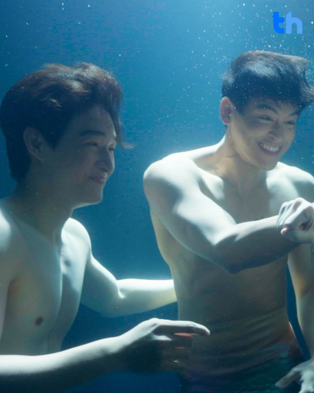 ซึ่งสระที่เราใช้ถ่ายทำกันความลึกก็ประมาณ 5-6 เมตร ดังนั้นสิ่งที่เขาเห็นคือข้างบนก็มืด ข้างล่างก็มืดจริง ๆ ตอนเรียนดำน้ำ น้อง ๆ จะต้องเรียนทั้งสกูบาที่ใช้ถังออกซิเจน และเรียนดำน้ำแบบฟรีไดฟ์ ต้องเรียนเรื่องการกลั้นหายใจ การใช้ปอด วิธีการหายใจ ซึ่งในด้านการถ่ายทำ เราดูแลเรื่องความปลอดภัยอย่างเต็มที่ ต้องขอขอบคุณทีมที่ดูแลความปลอดภัยใต้น้ำมาก ๆ ครับ ที่คอยซัปพอร์ตความปลอดภัยให้เราทั้งหมด ประกบนักแสดงแบบ 1 ต่อ 1 เลย