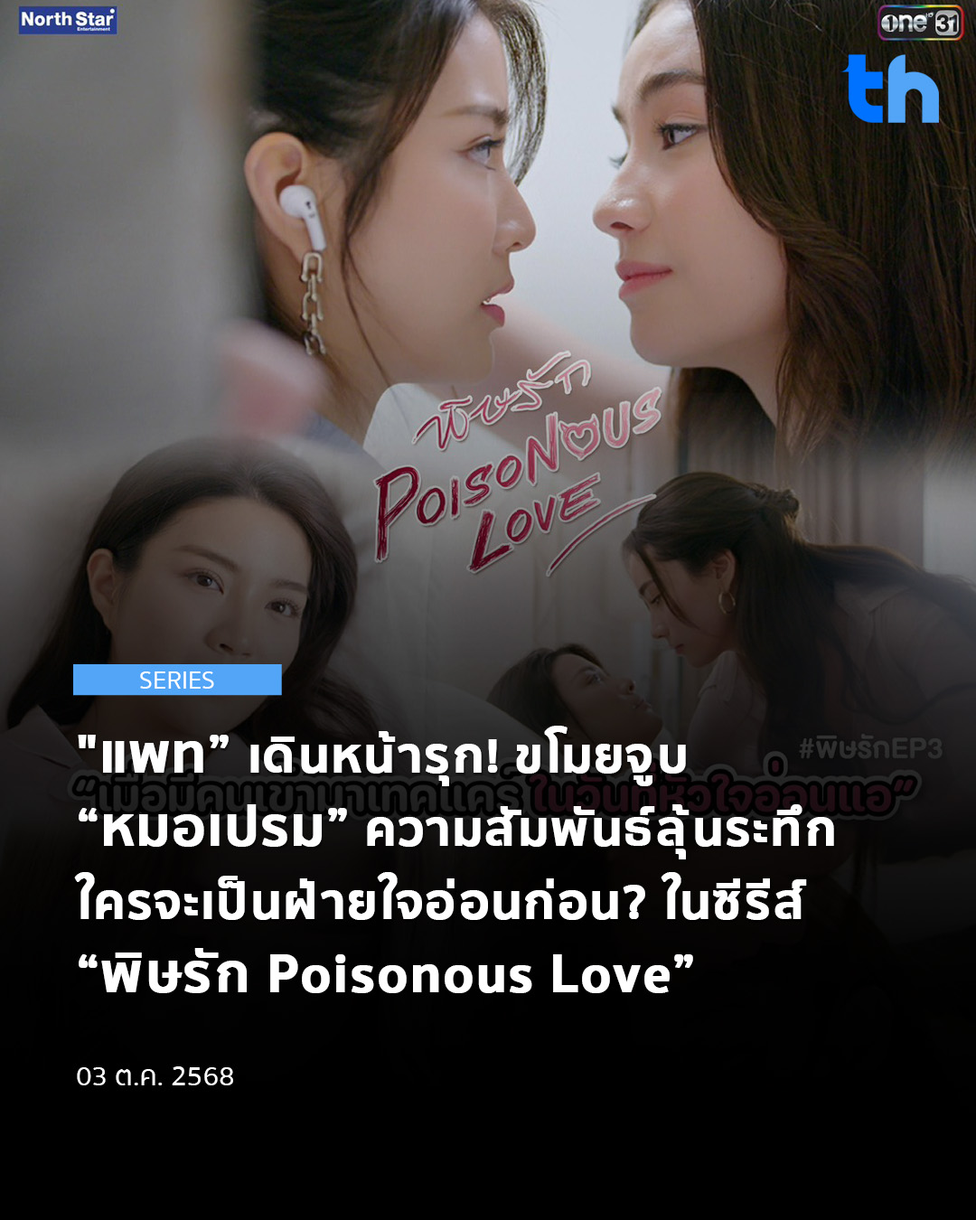 สามารถรับชมซีรีส์ “พิษรัก” Poisonous Love ทุกวันเสาร์ เวลา 22.30น. ทางช่องONE31 และ Uncut Verions ทางYoutube : North Star Entertainment เวลา 23.30น.