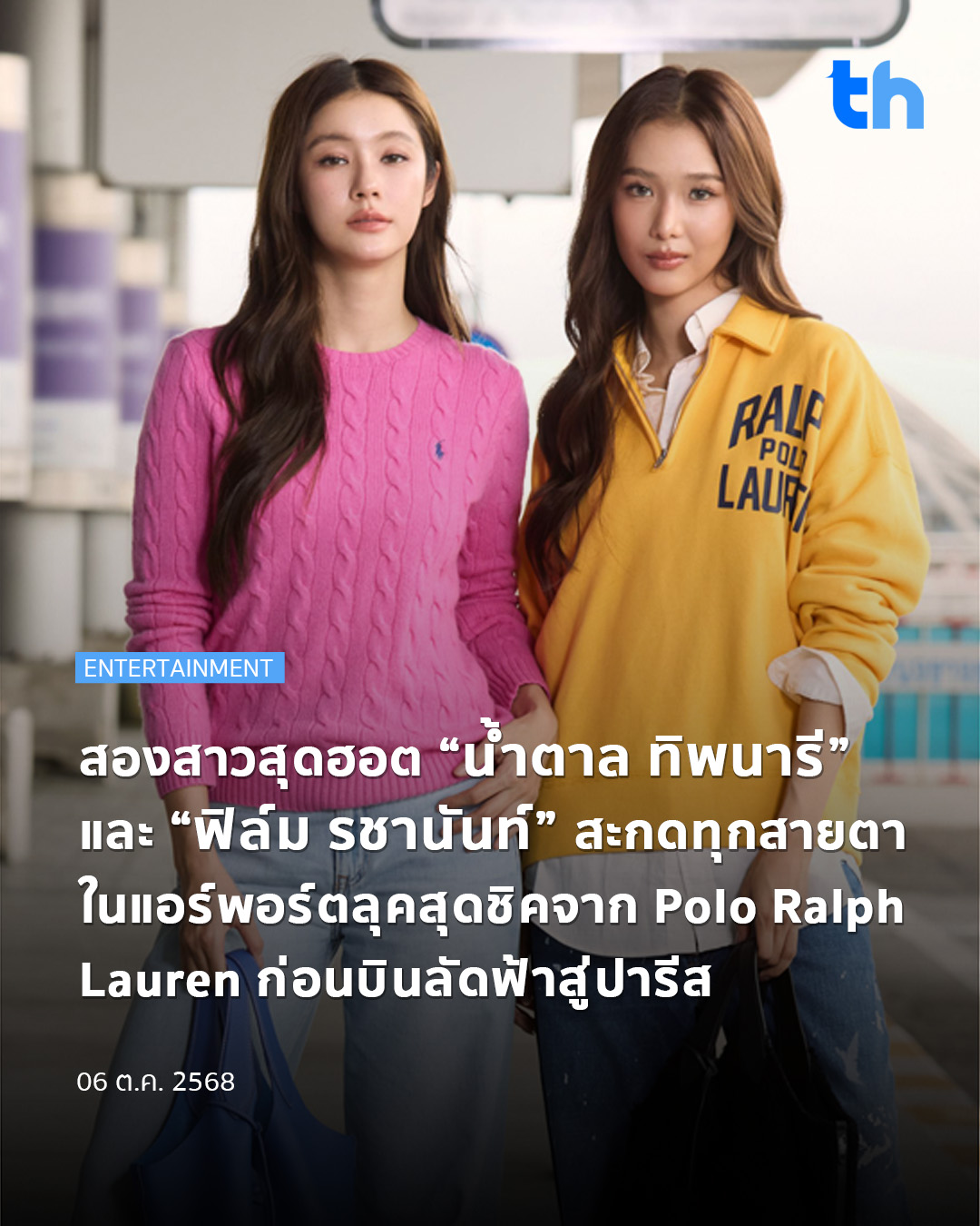สองสาวสุดฮอต “น้ำตาล ทิพนารี” และ “ฟิล์ม รชานันท์” สะกดทุกสายตาในแอร์พอร์ตลุคสุดชิคจาก Polo Ralph Lauren ก่อนบินลัดฟ้าสู่ปารีส