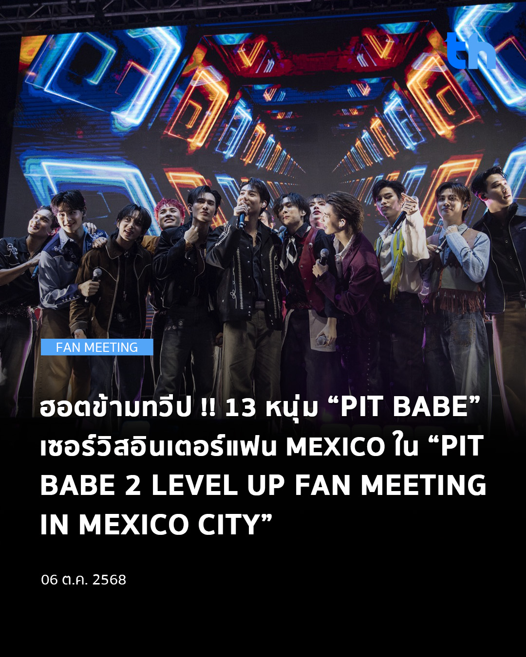 สร้างปรากฏการณ์ความฮอตข้ามโลกอย่างน่าภาคภูมิใจให้กับวงการซีรีส์วายไทย สำหรับ “PIT BABE 2 LEVEL UP FAN MEETING IN MEXICO CITY” ที่ 13 หนุ่มนักแสดงนำจาก “PIT BABE THE SERIES 2” ได้แก่ พูห์ กฤติน ,พาเวล นเรศ , สายลับ เหมวิช , ภณ ธนภณ , ปิง โอบนิธิ, นัท ศุภณัฐ, เบนซ์ อัทธ์ธนิน , กาฟิวส์ พันธุ์ธัช , ไมเคิล เกียรติศักดิ์, ท๊อปเทน ศุภกรณ์, ป๊อป ภัทรพล, ลี อัสรี และมิ้ล ณัฐชนน เดินทางไกลกว่า 20,000 กิโลเมตร ใช้เวลากว่า 30 ชั่วโมง จากประเทศไทยสู่เม็กซิโก