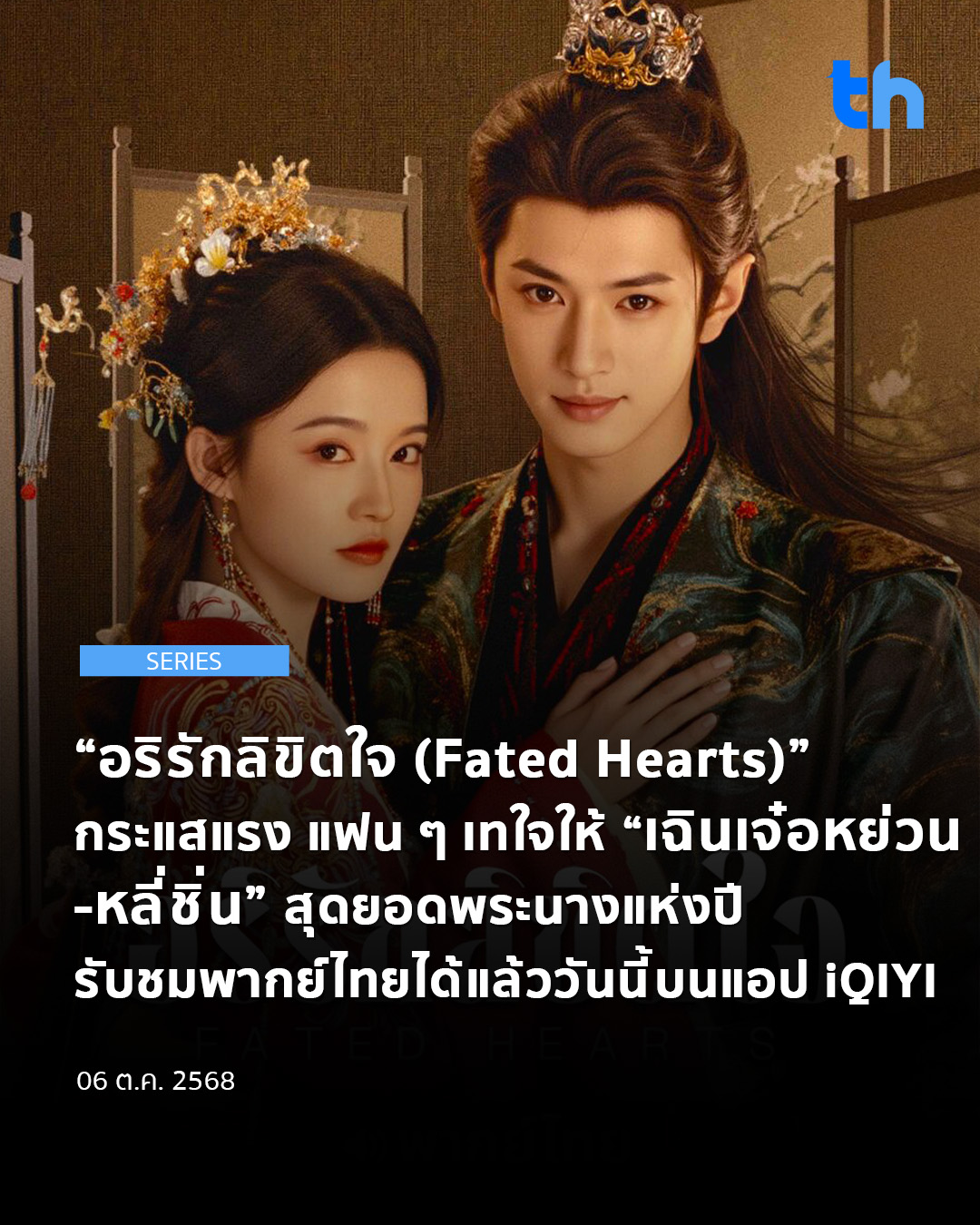 กระแสแรงตั้งแต่ต้นปีสำหรับ ซีรีส์จีนเรื่อง “อริรักลิขิตใจ (Fated Hearts)” ผลงานพีเรียดฟอร์มยักษ์ส่งท้ายปีจาก iQIYI (อ้ายฉีอี้) เจ้าตลาดซีรีส์จีน เพียงแค่ออกอากาศตอนแรกก็ทำเอาโซเชียลร้อนระอุไปกับความน่าติดตามและพล็อตเรื่องที่สนุกครบรส