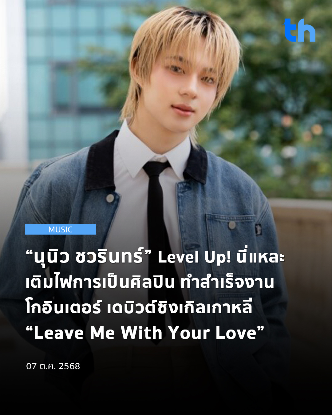Home»NEWS»“นุนิว ชวรินทร์” Level Up! นี่แหละเติมไฟการเป็นศิลปิน ทำสำเร็จงานโกอินเตอร์ เดบิวต์ซิงเกิลเกาหลี “Leave Me With Your Love”