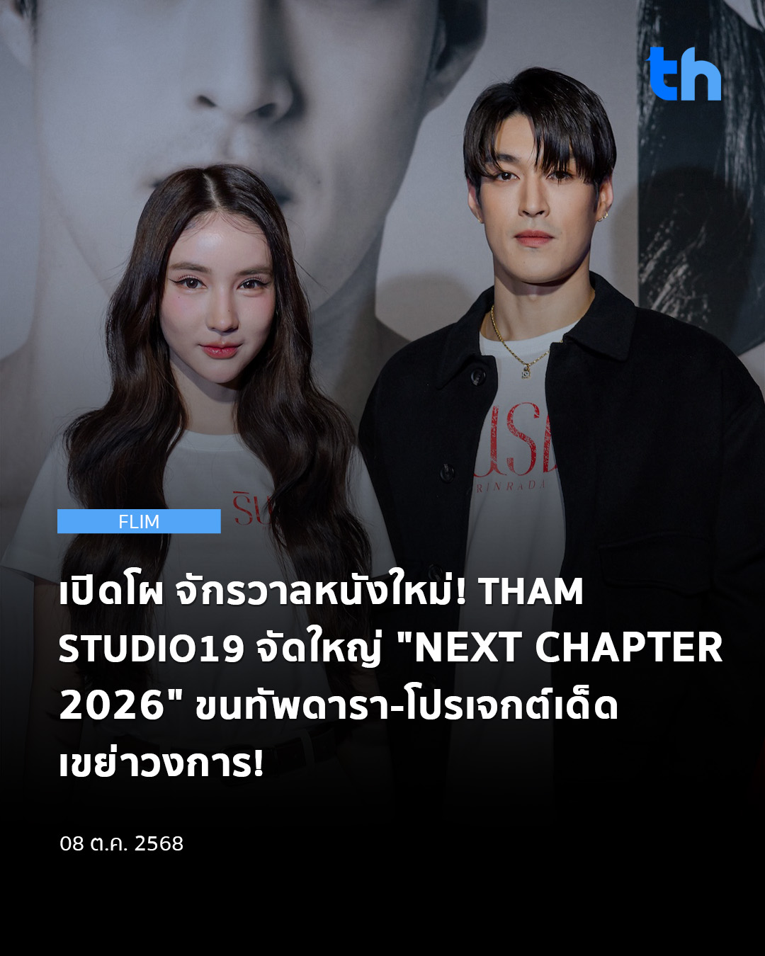 โรงหนังแทบแตก! เมื่อ THAM STUDIO19 ค่ายหนังสุดปัง ได้ฤกษ์เปิดตัวงานใหญ่แห่งปี ภายใต้ชื่องาน “THAM STUDIO’s NEXT CHAPTER 2026 : Close Encounter with RINRADA” เมื่อวันอังคารที่ 7 ตุลาคม 2568 ที่ผ่านมา ณ โรงภาพยนตร์ เอส เอฟ เวิลด์ ซีเนม่า เซ็นทรัลเวิลด์ ชั้น 8 งานนี้ไม่ธรรมดา เพราะแน่นขนัดไปด้วยเหล่าคนในแวดวงหนัง ทั้งผู้กำกับ นักแสดง พันธมิตรทางธุรกิจ เพจหนังตัวท็อป พร้อมด้วยแฟน ๆ ที่ตามมาให้กำลังใจ และแน่นอนว่าขาดไม่ได้คือพี่ ๆ น้อง ๆ สื่อมวลชนที่มาร่วมเก็บภาพความคึกคักตั้งแต่เริ่ม!