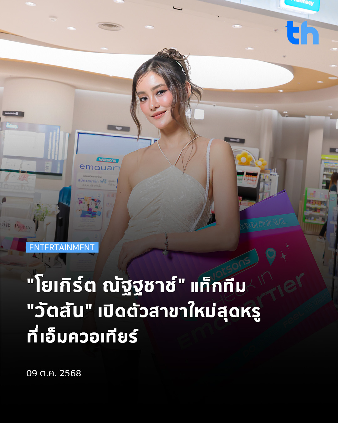วงการบิวตี้ต้องสะเทือน เมื่อซุปตาร์สาวสุดฮอต “โยเกิร์ต ณัฐฐชาช์ บุญประชม” แท็กทีม “วัตสัน” ผู้นำร้านเพื่อสุขภาพและความงามอันดับหนึ่งของประเทศไทย พาทัวร์สาขาใหม่ล่าสุดที่ศูนย์การค้าเอ็มควอเทียร์ พร้อมชวนแฟน ๆ มาอัปเดตเทรนด์ความงามสไตล์สาวสุขภาพดีกับแบรนด์ชั้นนำแบบจัดเต็ม 7,000 กว่ารายการ อาทิ The Ordinary, Dyson, La glace, 3CE, Skinfood, Foreo, Torriden, Bio Active รวมถึงแบรนด์เอ็กซ์คลูซีฟอีกมากมาย ณ ร้านวัตสัน สาขาเอ็มควอเทียร์ ชั้น 3 โซน Helix
