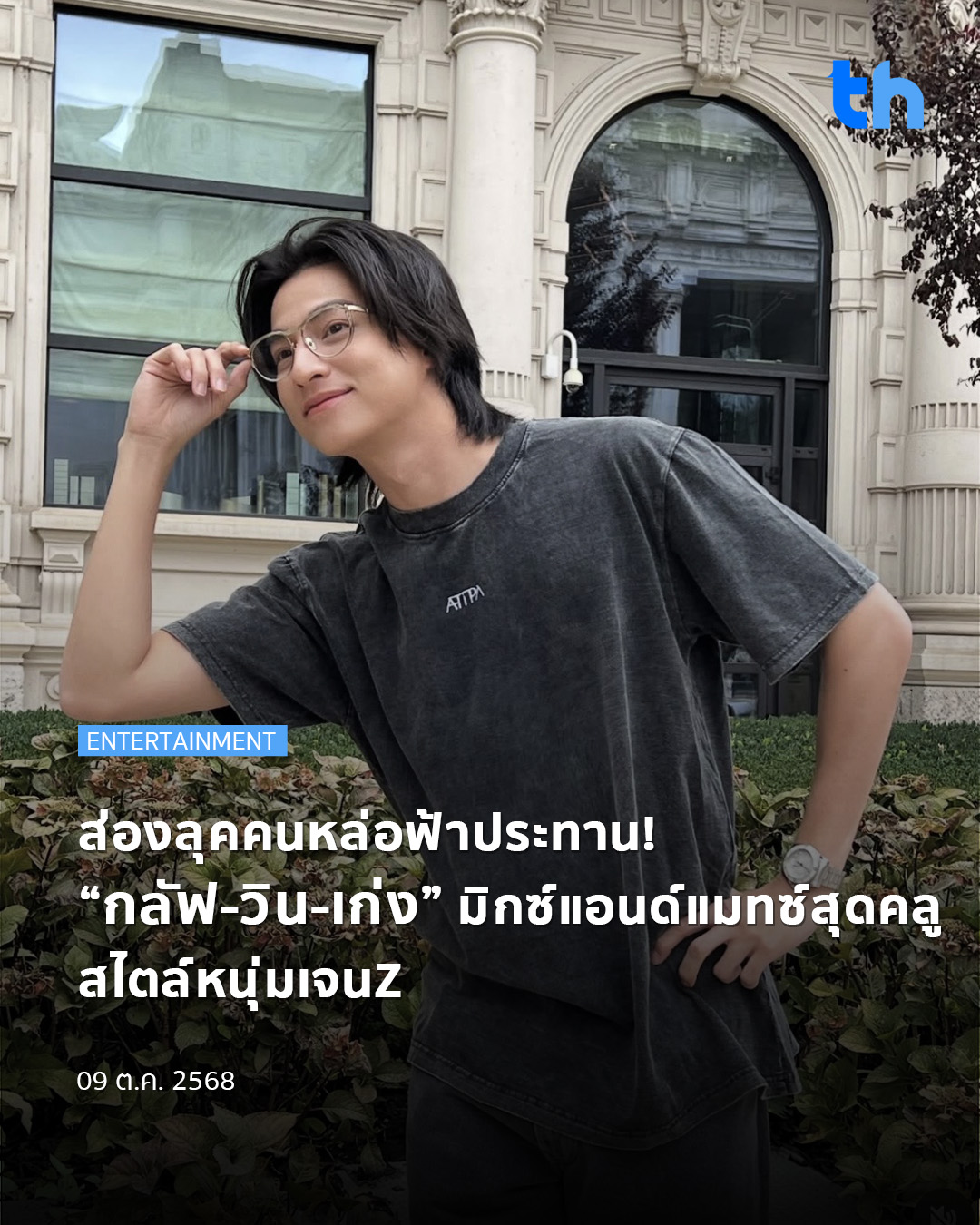เริ่มกันที่ “กลัฟ คณาวุฒิ” จากบอยเลิฟหน้าหล่อ แลนดิ้งสู่พระเอกช่อง3 ก็มิกซ์เสื้อยืดสีฟอกและยีนส์สีอ่อน เพิ่มความน่ารักใสซื่อด้วยแว่นตาสายเนิร์ด