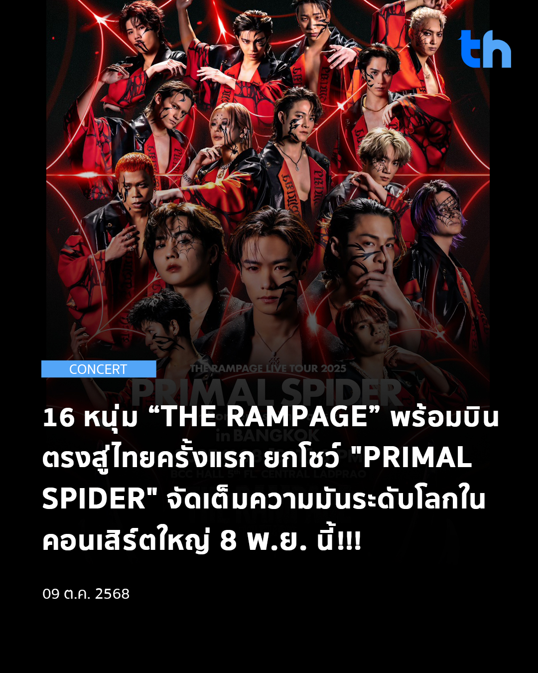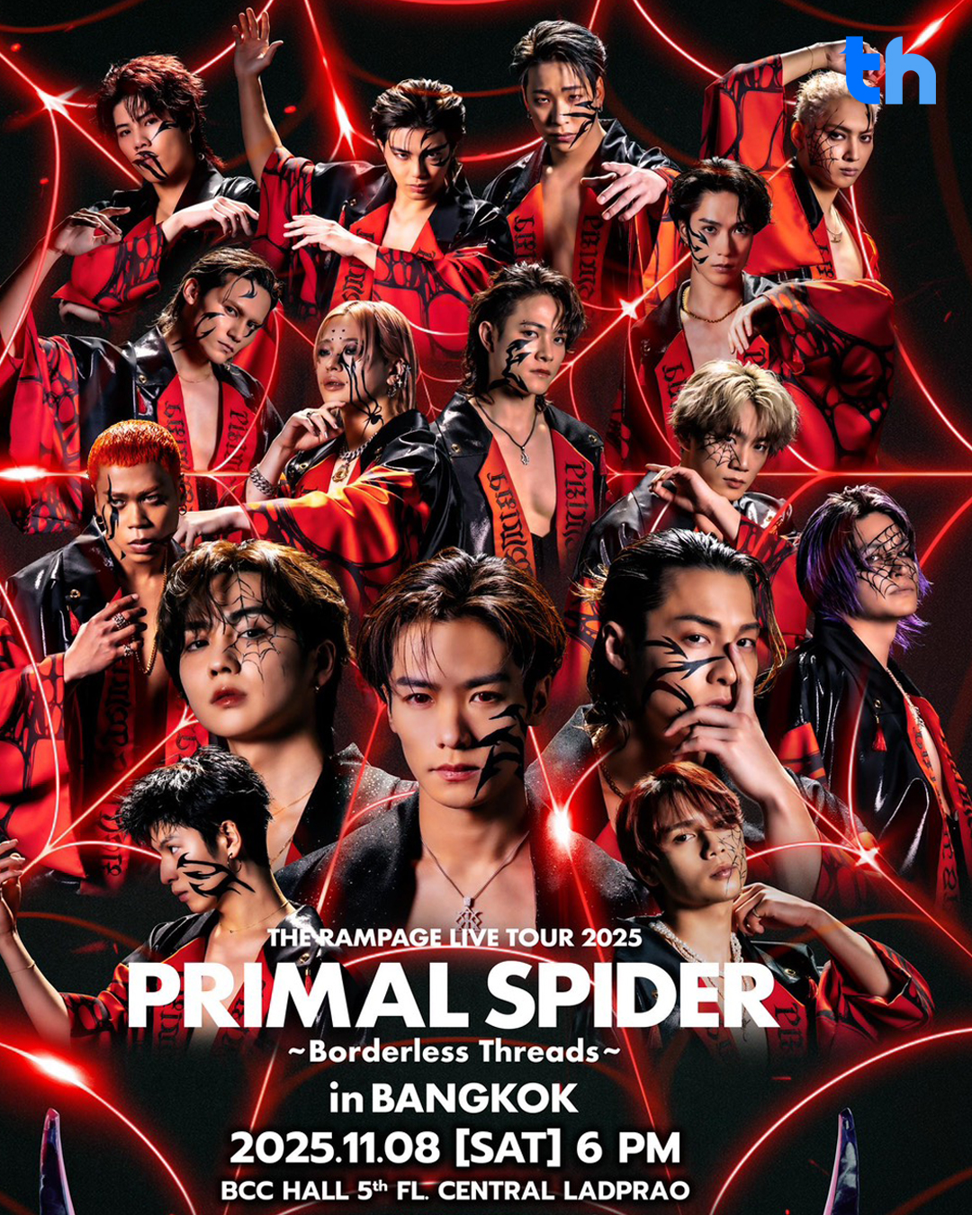 ตอนนี้พร้อมแล้วกับการเตรียมบินตรงมาระเบิดความมัน กับคอนเสิร์ตใหญ่เต็มรูปแบบครั้งแรกในไทย “THE RAMPAGE LIVE TOUR 2025 PRIMAL SPIDER BORDERLESS THREADS IN BANGKOK” พร้อมเซอร์ไพรส์ไฮไลท์เด็ด ในวันที่ 8 พฤศจิกายนนี้ เวลา 18.00 น. ณ บีซีซี ฮอลล์ ชั้น 5 เซ็นทรัล ลาดพร้าว คอนเสิร์ตครั้งนี้ถือเป็นโอกาสครั้งสำคัญที่แฟนเพลงชาวไทยจะได้สัมผัส “PRIMAL SPIDER” ทัวร์ที่ถ่ายทอดพลังและบรรยากาศอันเป็นเอกลักษณ์ของทัวร์จากญี่ปุ่นโดยไทยได้รับเลือกเป็นหนึ่งในสามประเทศจุดหมายปลายทางของเอเชียทัวร์