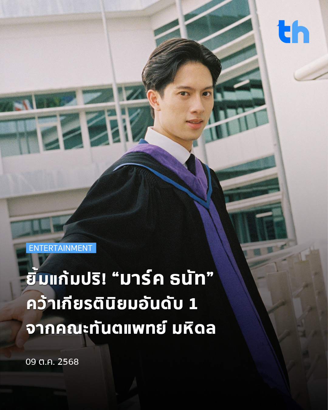 อีกหนึ่งวันสำคัญของ “มาร์ค – ธนัท รัตนสิริพันธ์” ล่าสุด (7 ตุลาคม 2568) เจ้าตัวเข้ารับพระราชทานปริญญาบัตร ระดับปริญญาตรี เกียรตินิยมอันดับ 1  จากคณะทันตแพทยศาสตร์ มหาวิทยาลัยมหิดล ท่ามกลางบรรยากาศอบอุ่น โดยมีทั้งครอบครัว แฟนคลับ และพาร์ทเนอร์อย่าง “ฟลุท – ชินพรรธน์ กิติชัยวรางค์กูร” มาร่วมแสดงความยินดีด้วยตัวเอง และฟลุทได้มอบของขวัญสุดพิเศษที่ “มาร์ค” อยากได้มานาน สมกับเป็นสายเปย์ตัวจริง ที่คอยซัพพอร์ตกันมาตลอด