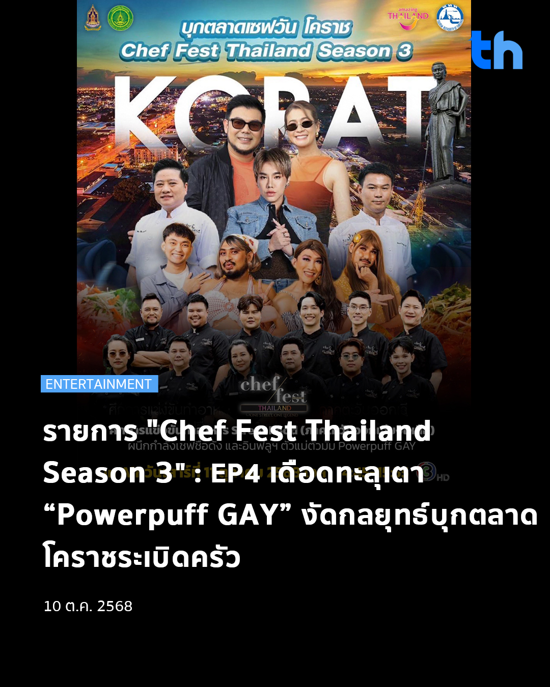 สงครามจานเดือดภายใต้โจทย์ “Street Food อีสาน” ในรายการ “Chef Fest Thailand Season 3 : One Street, One Legend” EPที่แล้ว ณ ตลาดนัดเซฟวัน โคราช ศูนย์รวมของกินระดับตำนานภาคตะวันออกเฉียงเหนือร้อนแรงจนครัวไฟลุก EP4 วันเสาร์ที่ 11 ตุลาคมนี้ ยิ่งอัพเลเวลความโหดเตรียมเปิดโหมดแตกหัก!!