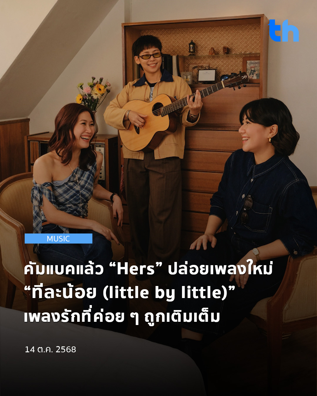 หากใครคิดถึงเสียงร้องเพราะ ๆ และดนตรีอะคูสติกฟังง่ายตามแบบฉบับของ “Hers” สามารถเติมความอุ่นพร้อมกันได้แล้วทุกแพลตฟอร์ม หรือใครอยากแชร์โมเมนต์สุดน่ารักของ อย่าลืมติดแผ่นเสียงเพลง “ทีละน้อย (little by little)” ทุกโซเชียลแพลตฟอร์มเช่นกัน