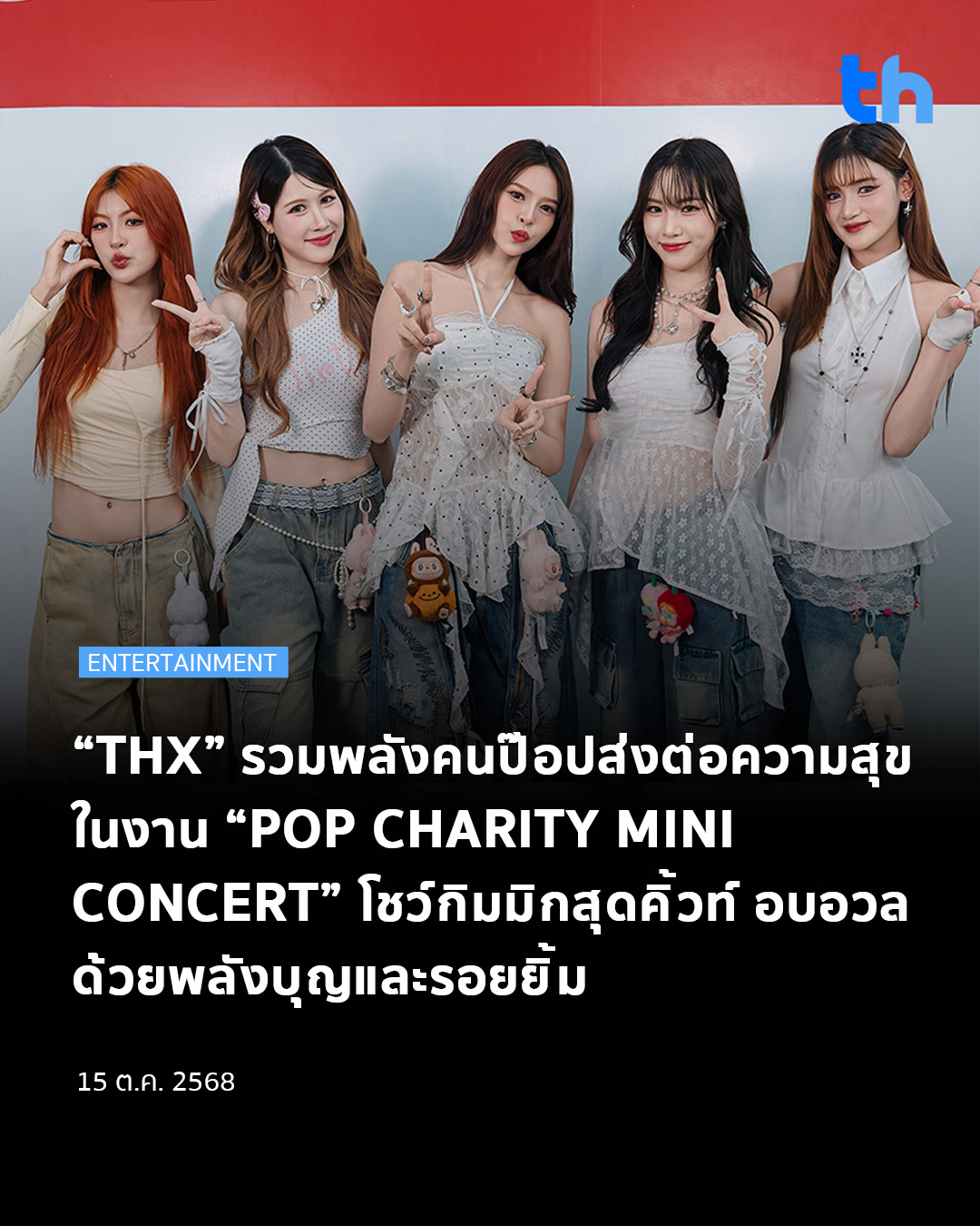 คึกคักทั้งพลังบุญและความป๊อป! เมื่อสาว ๆ เกิร์ลกรุ๊ป “THX” จากค่าย E29 Music Identities ร่วมเป็นส่วนหนึ่งของงานการกุศลสุดอบอุ่น “POP CHARITY MINI CONCERT – Bring Joy, Surprises & Smiles!” ที่จัดโดย POP MART THAILAND เพื่อระดมทุนมอบให้กับ สภากาชาดไทย งานนี้ไม่เพียงมอบความสุขผ่านเสียงเพลงจากศิลปินสุดฮอต แต่ยังเติมเต็มหัวใจด้วยการแบ่งปันที่มีความหมาย