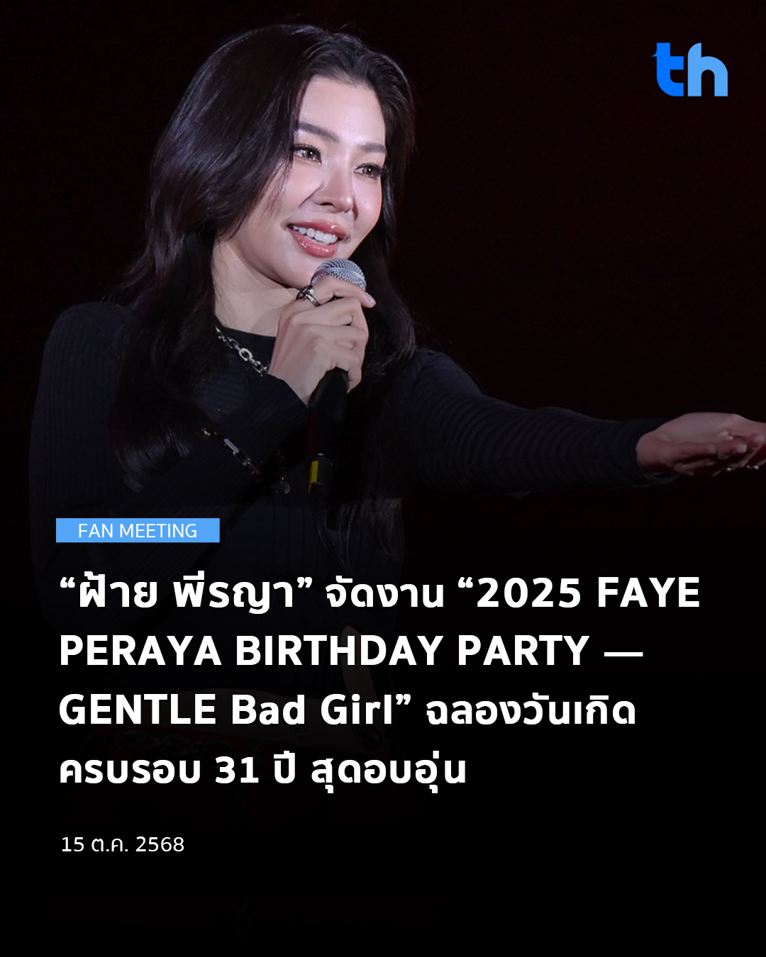 รวมตัวแฟนคลับ ทั้งไทย และอินเตอร์แฟน มาอยู่ในงานเดียวกันได้แบบฟูลฟิลมากๆ สำหรับงาน “2025 FAYE PERAYA BIRTHDAY PARTY — GENTLE ✦ Bad Girl” งานฉลองวันเกิด อายุครบ 31 ปี ของศิลปินและนักแสดงมากความสามารถ “ฝ้าย พีรญา มะลิซ้อน” ที่ถือเป็นการเฉลิมฉลอง “การเติบโต” และ “ตัวตน” ของฝ้ายเลยก็ว่าได้