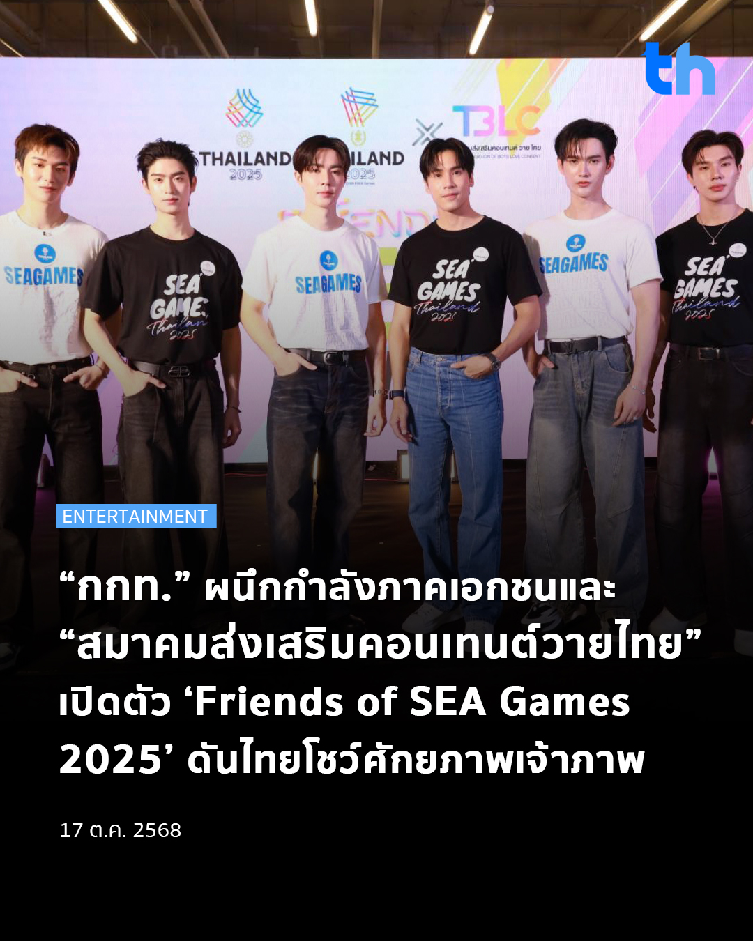 การกีฬาแห่งประเทศไทย (กกท.) ร่วมกับภาคเอกชนและสมาคมส่งเสริมคอนเทนต์วายไทย เปิดตัวโครงการ “Friends of SEA Games 2025” พร้อมประกาศความพร้อมของประเทศไทยในการเป็นเจ้าภาพ SEA Games และASEAN Para Games 2025