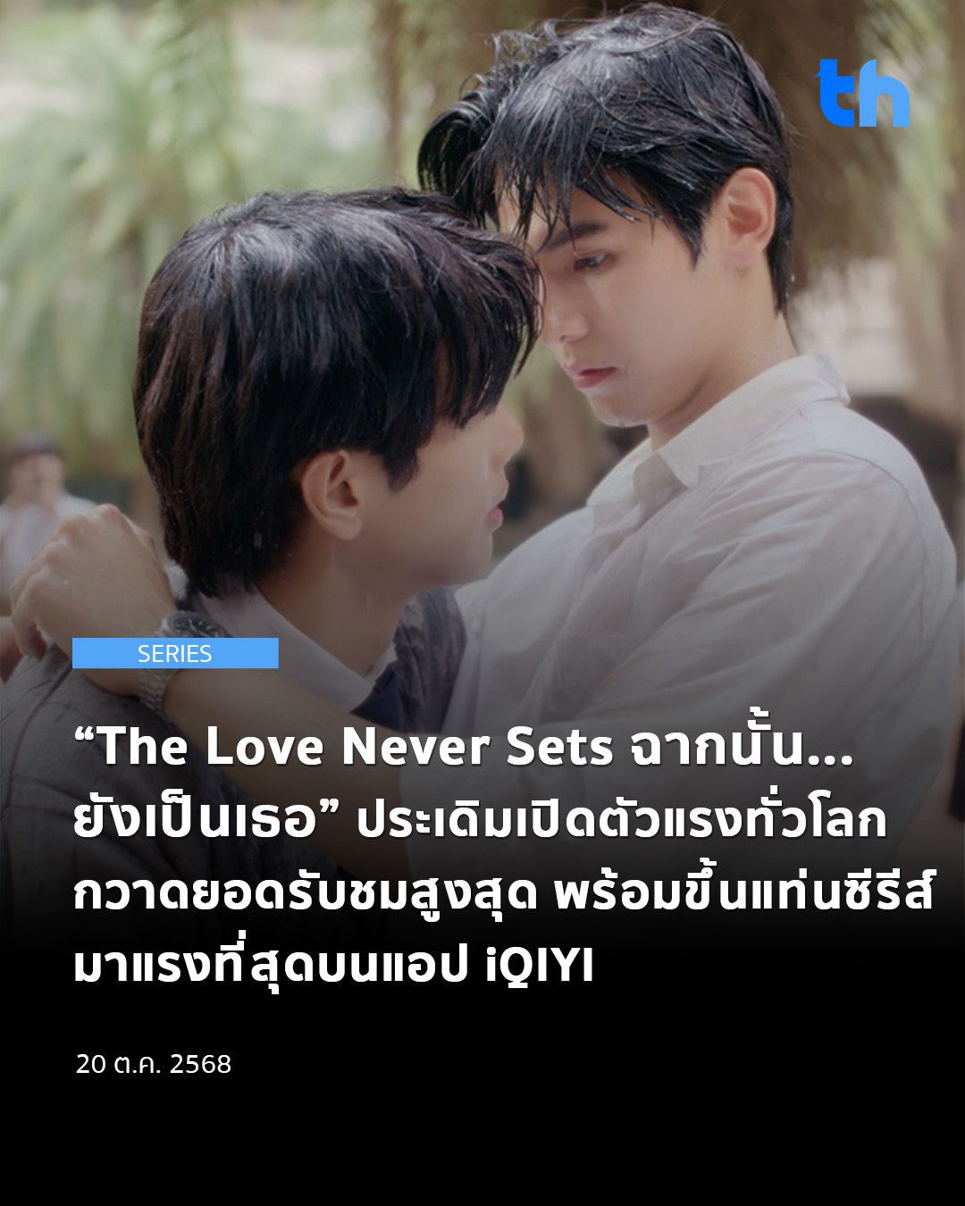เปิดตัวแรงสมฐานะ iQIYI Original สำหรับซีรีส์วายแนวโรแมนติก – ดรามา กระแสแรง “The Love Never Sets ฉากนั้น…ยังเป็นเธอ” ที่เรียกว่าเพียงแค่ตอนแรกก็ได้สร้างมาตรฐานใหม่ ๆ กับการเดินหน้าเก็บสถิติและกวาดคำชื่นชนอย่างล้นหลาม ด้วยพล็อตเรื่องที่เข้มข้น น่าติดตาม และเคมีของนักแสดงดาวรุ่งดวงใหม่อย่าง “จา พชร” และ “เต้ วีรภัทร”