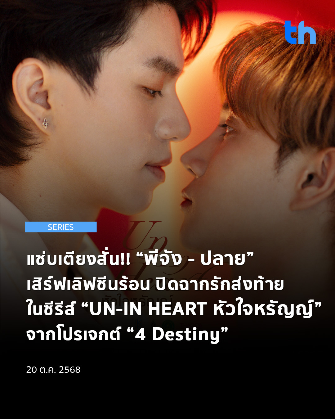 แฟน ๆ เตรียมหัวใจวาย!! กับฉากง้อครั้งสุดท้ายของ “พีจัง กฤษณะ ปันใจ” และ “ปลาย ฉัตริน โชติทิฆัมพร” ที่พร้อมเสิร์ฟเลิฟซีนสุดร้อนแรงจนต้องร้อง…ทิ้งทวน ใน “UN-IN HEART หัวใจหรัญญ์” ซีรีส์แนวโรแมนติก ดราม่า หนึ่งใน 4 โปรเจกต์สุดยิ่งใหญ่ “4 Destiny” จากค่าย เมค อะ พิคเจอร์ โปรดักชั่น งานนี้ผลจะ ออกมาเป็นแบบไหน? บอกเลยห้ามพลาด!!