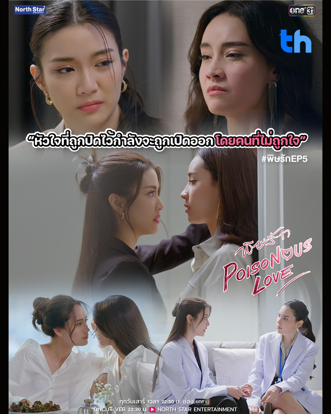 สามารถรับชมซีรีส์ “พิษรัก Poisonous Love” ทุกวันเสาร์ เวลา 22.30น. ทางช่อง ONE31 และ Uncut Verions ทาง Youtube : North Star Entertainment เวลา 23.30น.