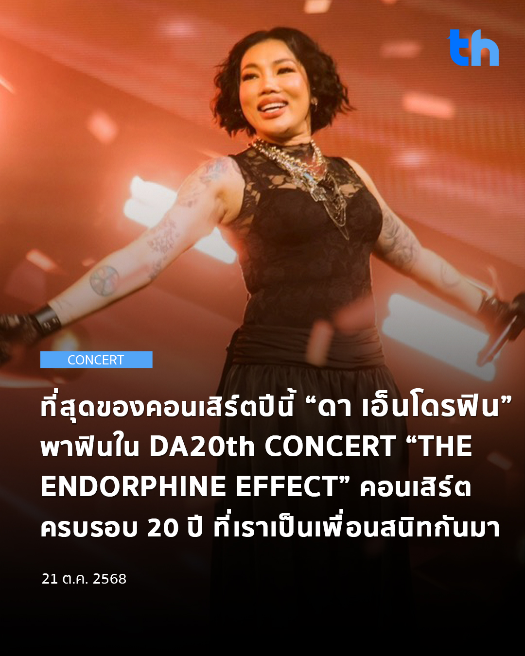 สร้างปรากฏการณ์ความฟินสมการรอคอยให้หายคิดถึงกันไปเลยตลอด 3 ชั่วโมงเต็ม สำหรับเพื่อนสนิทที่มารวมตัวร้องเพลงของ “ดา เอ็นโดรฟิน” ตั้งแต่เพลงแรกจนเพลงสุดท้ายดังกึกก้องสนั่นทั่วทั้งฮอลล์ ในทุกที่นั่งทั้งสองรอบการแสดง เมื่อวันที่ 18 และ 19 ตุลาคม 2568 ณ Royal Paragon Hall โดยก่อนหน้านี้ได้สร้างกระแสการขายบัตร Sold Out อย่างรวดเร็ว สมกับเป็นคอนเสิร์ตครบรอบ 20 ปี