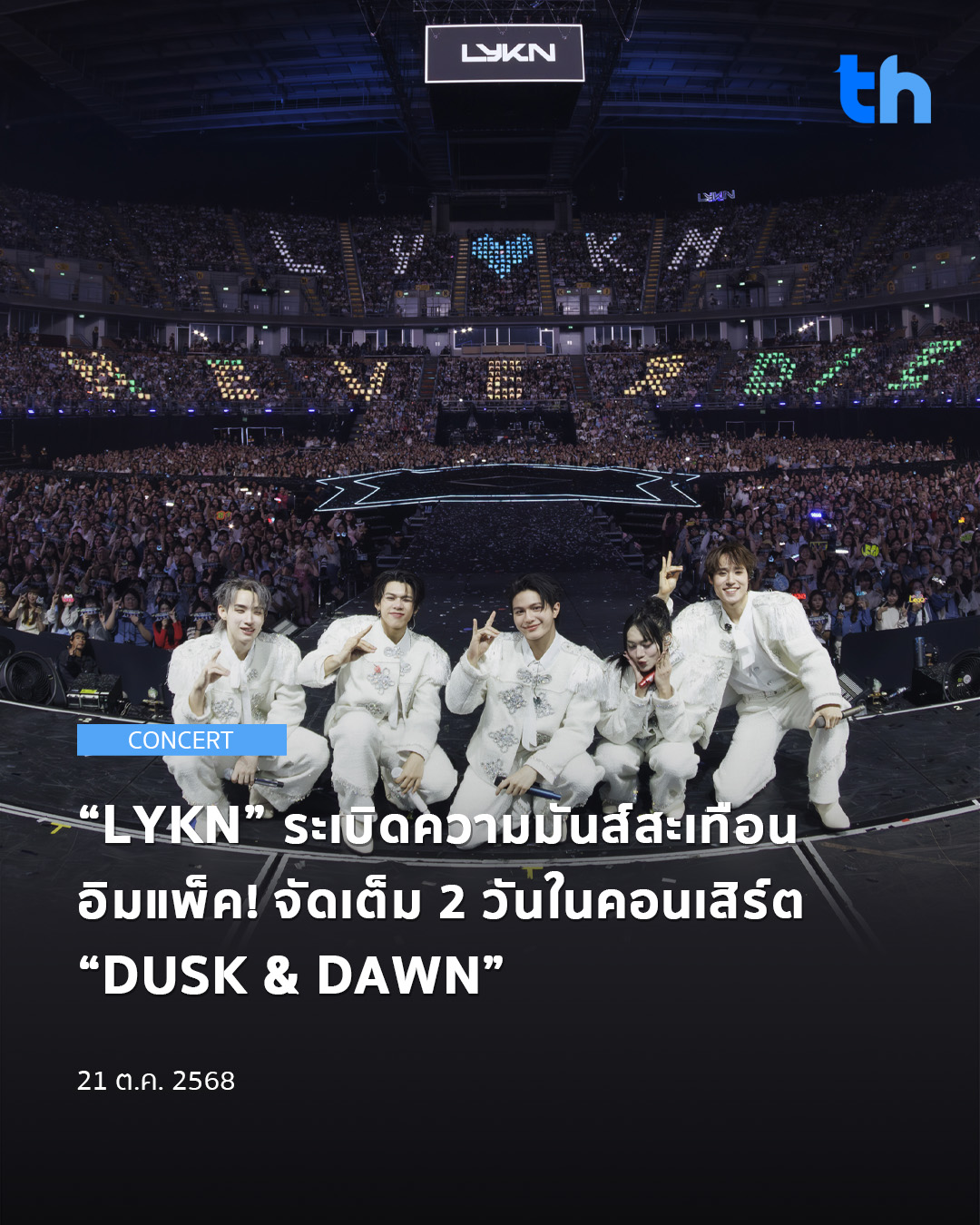 Streaming ผ่านทาง “TTM LIVE” ที่สามารถรองรับผู้ชมได้ครอบคลุมทั่วโลก เรียกว่าสร้างปรากฏการณ์ดังสนั่นโซเชียล ส่งให้แฮชแท็ก “LYKNDuskAndDawnConcertD1” ขึ้นเทรนด์ X ”อันดับ 1“ ของไทย, สาธารณรัฐโดมินิกัน, อินโดนีเซีย และ “LYKNDuskAndDawnConcertD2” ทะยานขึ้นเทรนด์ X “อันดับ 1”ของโลก ร่วมถึง ประเทศไทย, อาร์เจนตินา, โบลิเวีย, บราซิล, ชิลี,โคลอมเบีย, กรีซ, ฮ่องกง, ฮังการี, อินเดีย, อินโดนีเซีย, เคนยา, เม็กซิโก, ฟิลิปปินส์, สิงคโปร์, แอฟริกาใต้, เกาหลีใต้ และสหรัฐอเมริกา รวมถึงติดเทรนด์อันดับอื่น ๆ ในอีกหลายพื้นที่ทั่วโลก ซึ่งทั้ง 2 วัน มียอดพุ่งสูงถึงกว่า 3.3 ล้านโพสต์ เมื่อวันที่ 18-19 ตุลาคม 2568 ที่ผ่านมา ณ อิมแพ็ค อารีน่า เมืองทองธานี