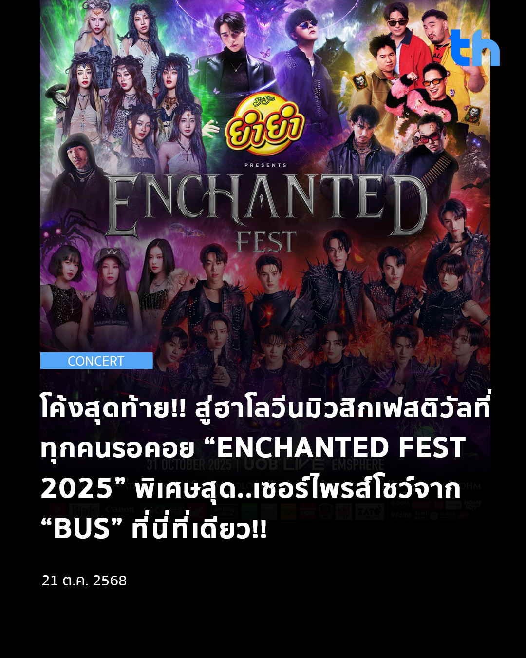 โค้งสุดท้าย!! สู่ฮาโลวีนมิวสิกเฟสติวัลที่ทุกคนรอคอย “ENCHANTED FEST 2025” พิเศษสุด..เซอร์ไพรส์โชว์จาก BUS ที่นี่ที่เดียว!!