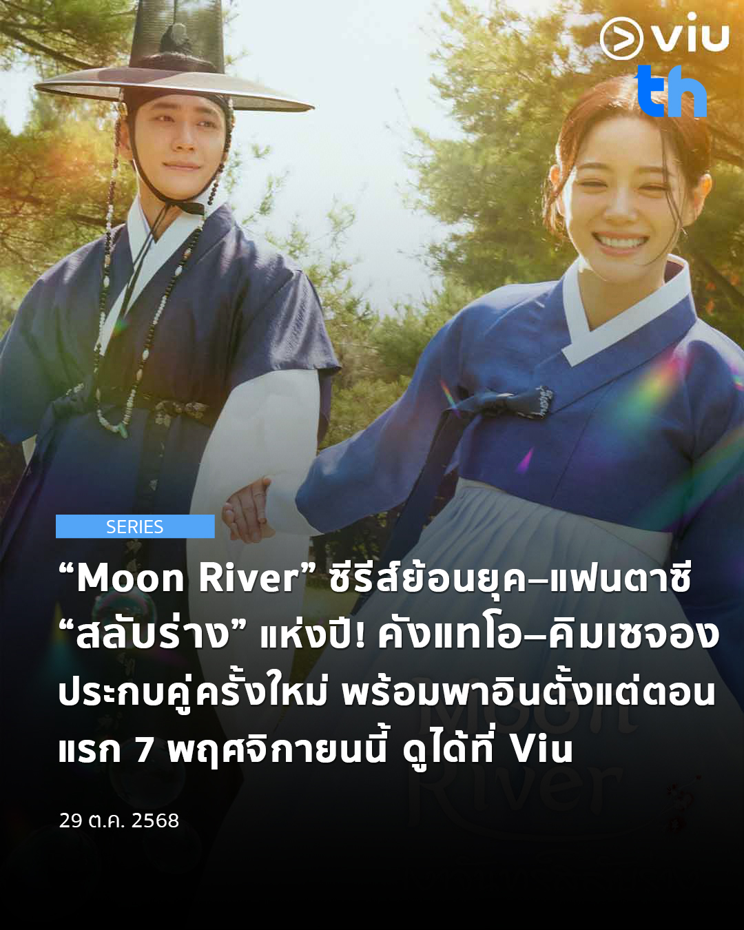 เตรียมเคลียร์คิวไว้ให้พร้อม…เพราะซีรีส์พล็อตแรงที่สุดช่วงปลายปีมาแล้ว! “Moon River” ซีรีส์เกาหลีแนวย้อนยุค–แฟนตาซีที่แฟน ๆ รอคอย นำแสดงโดย คังแทโอ และ คิมเซจอง รับชมซับไทยแบบถูกลิขสิทธิ์ได้ที่ Viu พร้อมออกอากาศตอนแรกในวันที่ 7 พฤศจิกายน 2025 ทุกวัน ศุกร์ – เสาร์ เวลา 21.10 น.