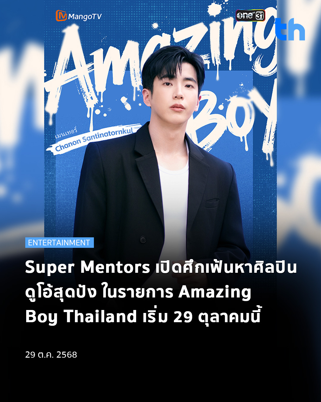 ติดตามชมความสนุกของรายการ Amazing Boy Thailand เต็มรูปแบบได้ในวันพุธที่ 29 ตุลาคมนี้ เวลา 22.30 – 23.30 น. ทางช่อง One 31 และ App Mango TV ในวันพุธที่ 29 ตุลาคมนี้ เวลา 11.00 -12.00 น. และวันอังคารที่ 4 พฤศจิกายน เวลา11.00 – 12.30 น.