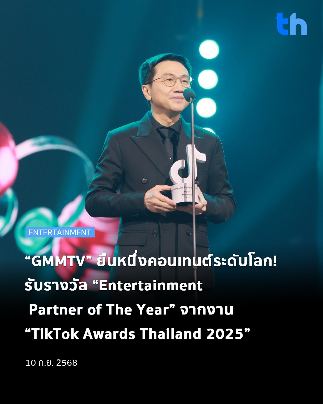 “GMMTV” ยืนหนึ่งคอนเทนต์ระดับโลก! รับรางวัล “Entertainment Partner of The Year” สุดยอดพาร์ตเนอร์ จากงานประกาศรางวัลสุดยิ่งใหญ่ “TikTok Awards Thailand 2025”