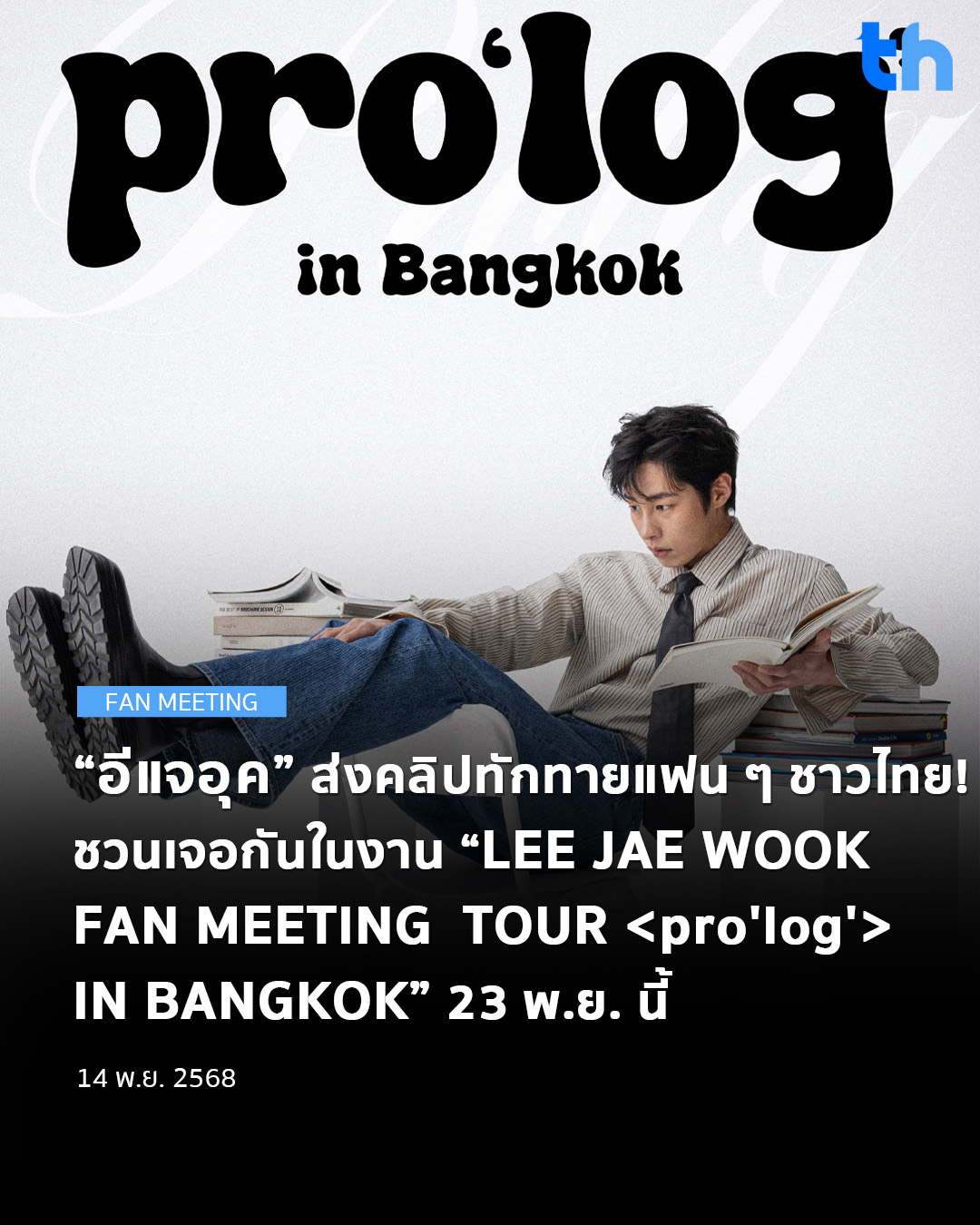 ใกล้เข้ามาทุกทีแล้วสำหรับงาน “LEE JAE WOOK FAN MEETING <pro’log’> IN BANGKOK” ที่อิจิโมชาวไทยตั้งตารอคอยพระเอกหนุ่มสุดฮอต “อีแจอุค” กว่า 2 ปี เตรียมเดินทางมาพบแฟน ๆ แบบใกล้ชิดในวันอาทิตย์ที่ 23 พฤศจิกายน 2025 ณ TRUE ICON HALL ชั้น 7 ICONSIAM โดยผู้จัดมากคุณภาพ Grandprix Xpectrum บริษัท กรังด์ปรีซ์ อินเตอร์เนชั่นแนล จำกัด(มหาชน)