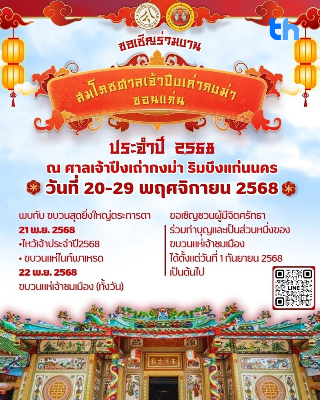 ถนนศรีจันทร์ที่เคยพลุกพล่านด้วยรถยนต์ กลับมามีชีวิตอีกครั้ง ด้วยแสงโคมสีแดง เสียงหัวเราะ และกลิ่นอาหารยามค่ำ บางร้านแขวนป้าย “เฮง เฮง รวย รวย” คู่กับโคมไฟ บางร้านเปิดเพลงจีนคลอเบา ๆ ให้ผู้คนได้หยุดยิ้ม งาน “ปึงเถ่ากงม่า Festival Khon Kaen 2025” จะจัดขึ้นอย่างยิ่งใหญ่ ระหว่างวันที่ 20–29 พฤศจิกายนนี้ ตลอดเส้นทางถนนศรีจันทร์ถึงริมบึงแก่นนคร เพราะนี่ไม่ใช่เพียงเทศกาลแห่งศรัทธาเท่านั้น แต่ยังเป็นเทศกาลของ “แสงแห่งความสัมพันธ์” ที่หลอมหัวใจคนขอนแก่นให้สว่างไสวและอบอุ่นเหมือนบ้านเดียวกันอีกครั้ง