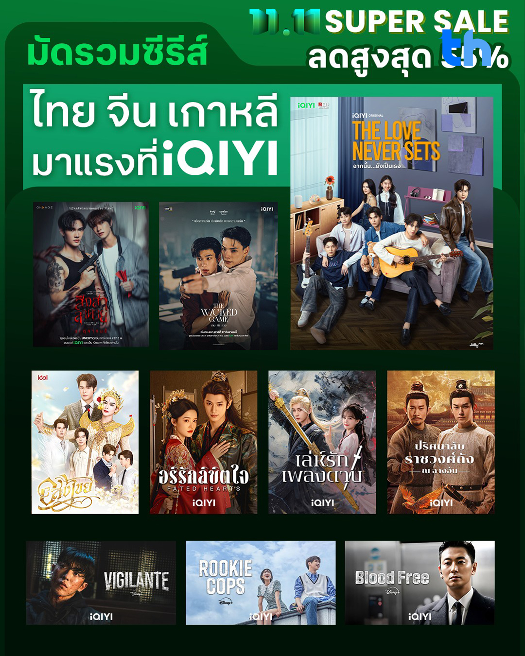 iQIYI (อ้ายฉีอี้) บ้านของความบันเทิงยอดนิยมแห่งเอเชีย พร้อมส่งต่อความสุขส่งท้ายปีด้วยคอนเทนต์ระดับพรีเมียมจาก ไทย–จีน–เกาหลี ครบทุกแนวทั้งโรแมนติก ดราม่า สืบสวน พีเรียด และแฟนตาซี ให้แฟนอ้ายได้ฟินครบรสในที่เดียวบนแอป iQIYI (อ้ายฉีอี้) พร้อมมอบสุดยอดของขวัญให้กับแฟน ๆ กับแคมเปญยักษ์ “iQIYI 11.11 SUPER SALE” ที่รวมความบันเทิงและโปรโมชันแรงที่สุดแห่งปี งานนี้ iQIYI (อ้ายฉีอี้) ขนทัพซีรีส์ดังมาเสิร์ฟแบบจัดเต็ม การันตีความสนุก ครบทุกอารมณ์ สมศักดิ์ศรีแพลตฟอร์มบันเทิงอันดับหนึ่งของเอเชีย