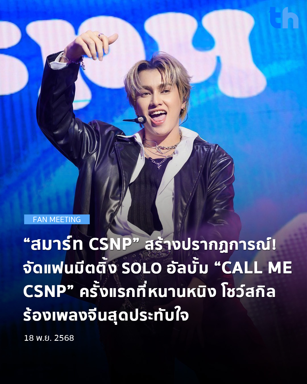 ทำเอาแฟน ๆ ชาวจีนกรี๊ดสนั่น! เมื่อศิลปินสุดฮอต CSNP (สมาร์ท ชิษณุพงศ์) ได้เดินทางไปจัดกิจกรรม แฟนมีตติ้ง SOLO อัลบั้ม “CALL ME CSNP” ครั้งแรก ณ เมืองหนานหนิง ประเทศจีน ซึ่งถือเป็นก้าวสำคัญครั้งแรกในฐานะศิลปินเดี่ยวที่ได้ใกล้ชิดกับแฟนคลับต่างประเทศอย่างเป็นทางการ