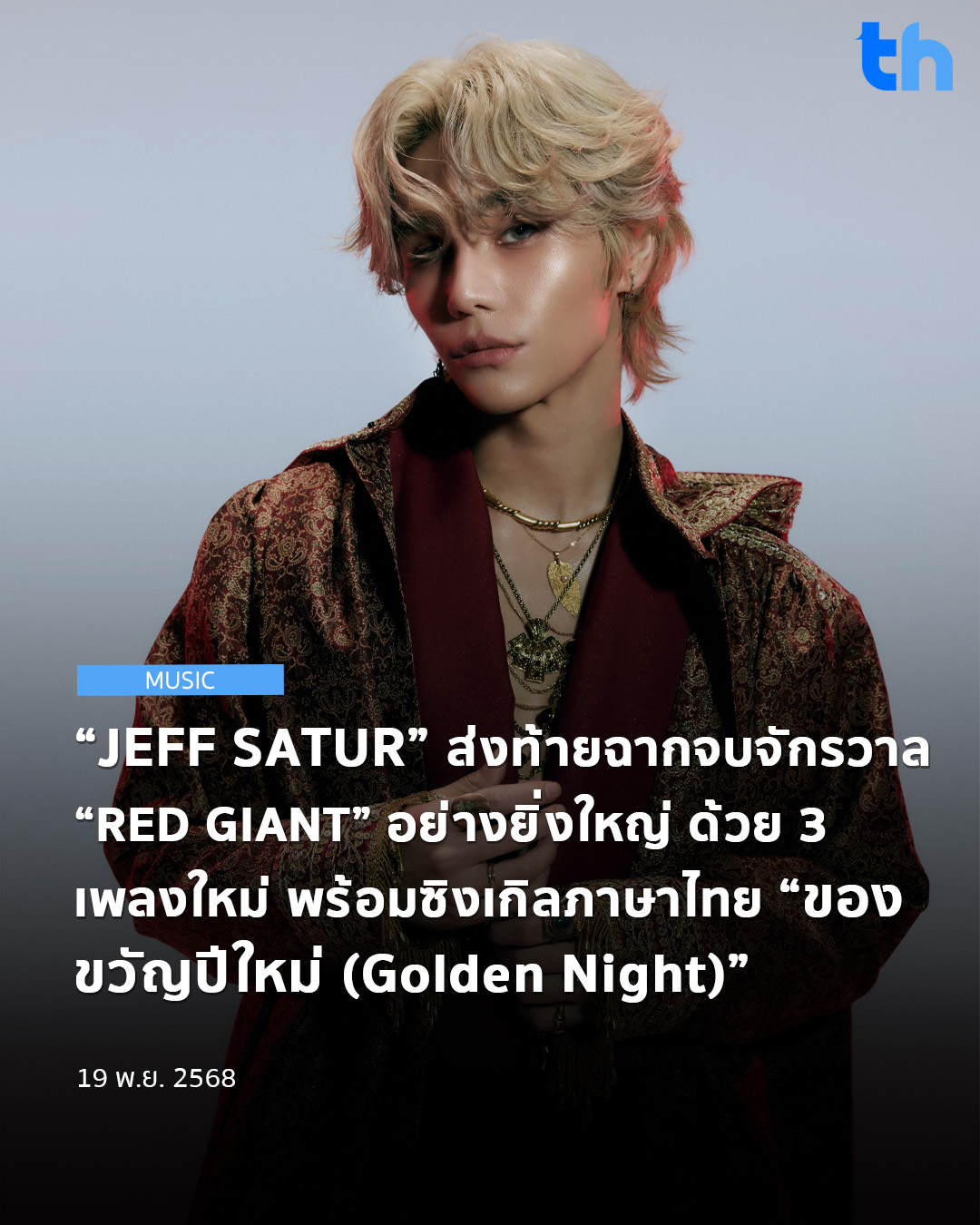 ศิลปินมากความสามารถ “JEFF SATUR” เตรียมส่งท้าย “Red Giant” อันยิ่งใหญ่ ด้วยการปล่อย JEFF SATUR : Red Giant EP อย่างเป็นทางการในวันที่ 17 พฤศจิกายน ที่จะถึงนี้ ซึ่งถือเป็นบทสรุปสุดสมบูรณ์ของปีแห่งความสำเร็จ