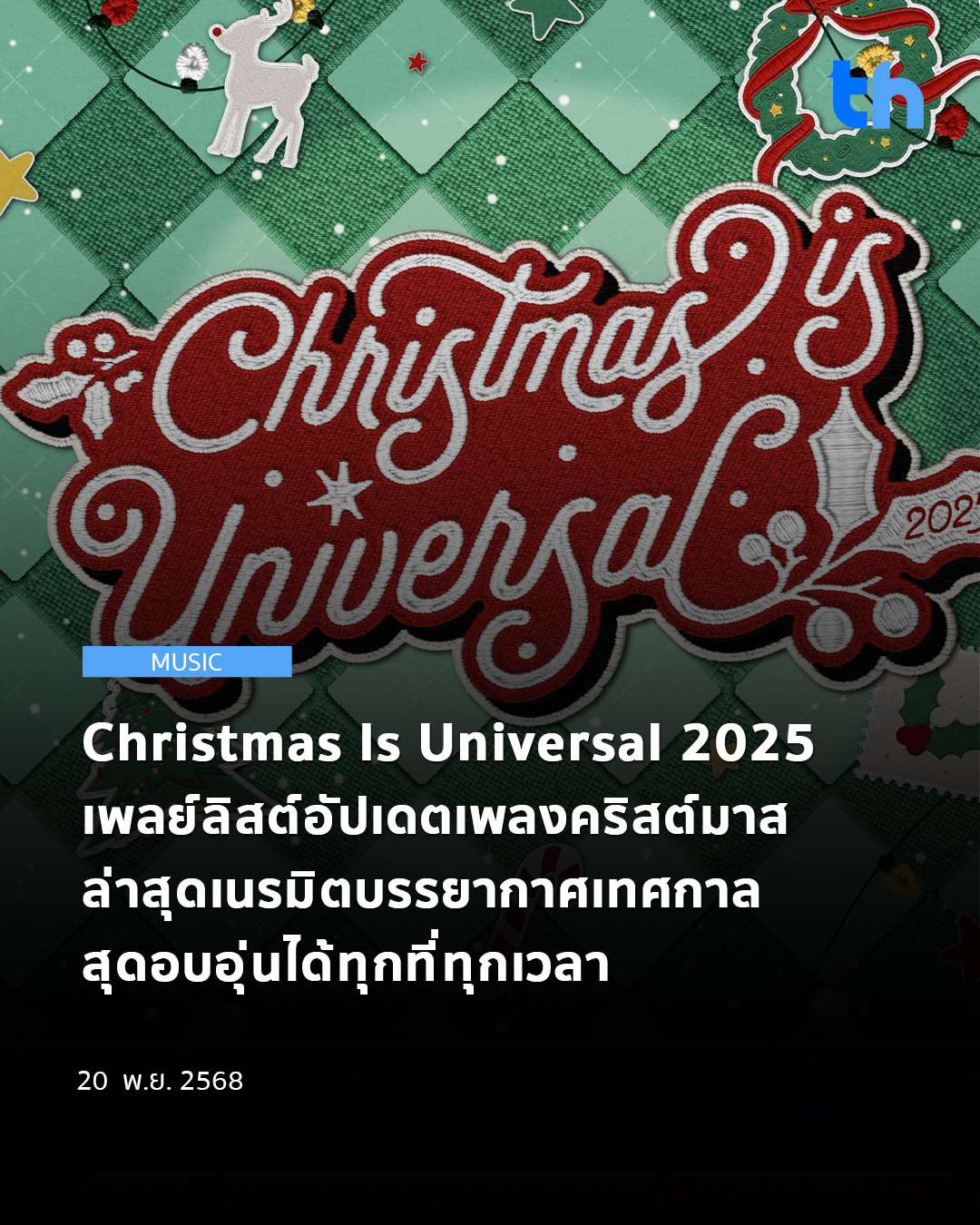 ยังมีเพลงคริสต์มาสเพราะ ๆ ทั้งเก่าและใหม่ รอให้คุณเปิดฟังด้วยกันที่งานปาร์ตี้ ที่ออฟฟิศ ที่บ้าน หรือขณะขับรถกันอีกเพียบ ฟังกันได้ยาว ๆ ตลอดทั้งคืน ตามไปฟังกันได้ที่เพลย์ลิสต์ Christmas Is Universal 2025บน Spotify